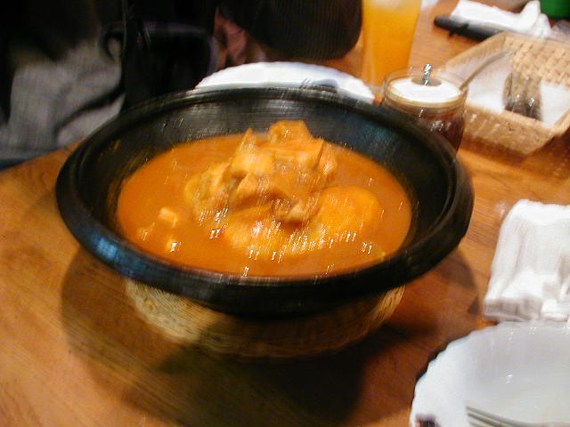 アフリカ料理と言えば、豪快(悪く言えば「粗野」)な味付けであるか、フランスなどのヨーロッパの国々の影響下にあって「すべからくブイヨン化」してどれも似たような味付けの料理に変わりはてている可能性を心配しながらの参加でしたが、そのどちらでもなく、そしてまたどちらもの良いとこ取りした感のある個性ある料理でした。(←ただし、初めに普通のサラダとピラフが出た時点では、他もこんな感じだったらどうしようと一様に不安な気持ちに陥ったものでしたが、まったくの杞憂でした。)5人がおなかいっぱいになって10,000円でおつりがきちゃうってのもうれしい驚きですが、とにかくお皿の盛りがいいので、ここに行く場合は人数揃えることをお薦めします。