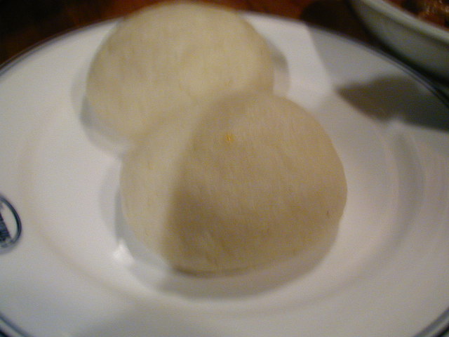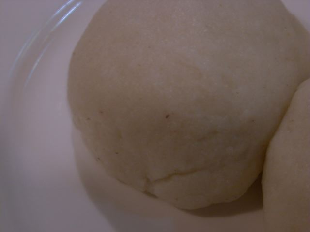 - 日本人全般に受けるとは思いませんが、私的にヒットです。イドゥリに似て発酵した酸味があります。イドゥリほど強い弾力はなく、噛みつくとむちゃーっとつぶれる食感です。これもねっとりしたオクラのシチューからませて、またいい感じでいただけます。(az)