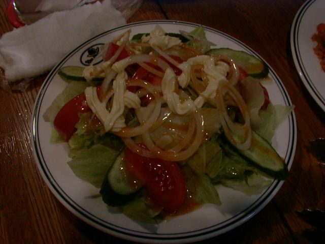 - 一皿で出されたので、盛り合わせしてもらったのでしょう。しかしただの野菜サラダでがっくし。しかもドレッシングは醤油ベースの和風。(az)