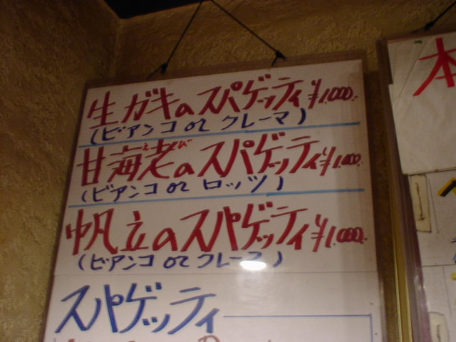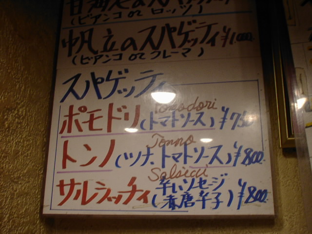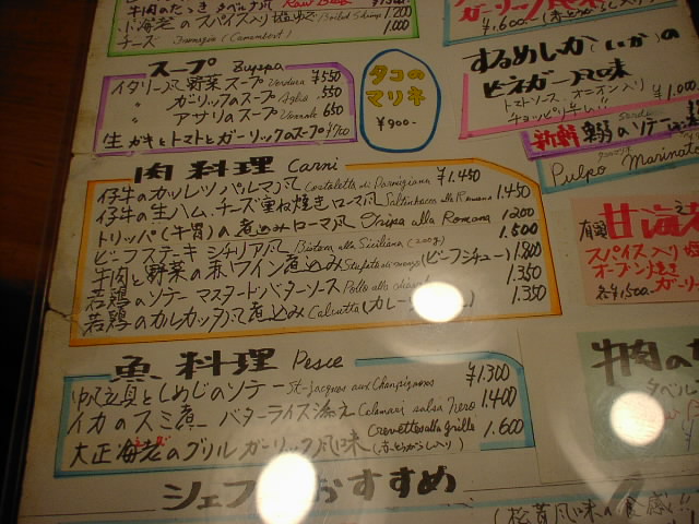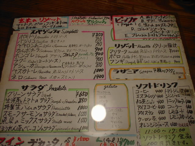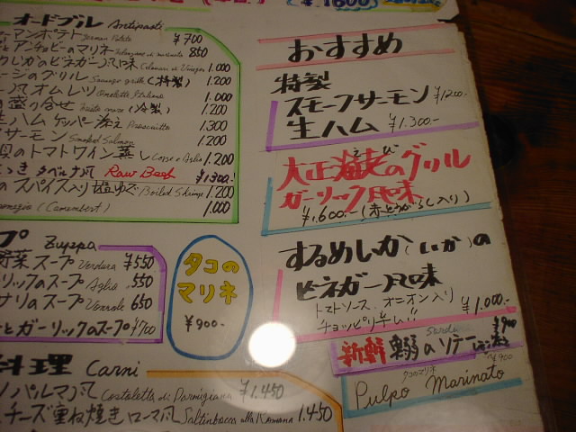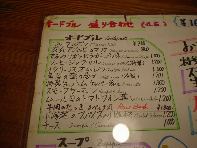 2001/12/29: タベルナのメニュー
