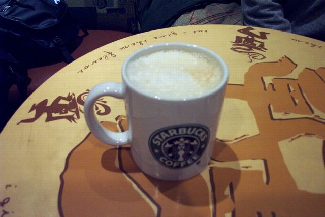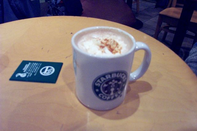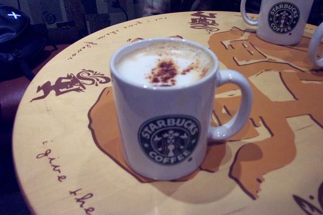 ダブルラテ(トール)+シナモン(←自分で振りかけた)