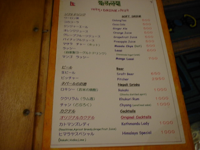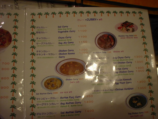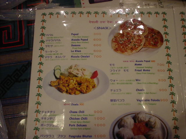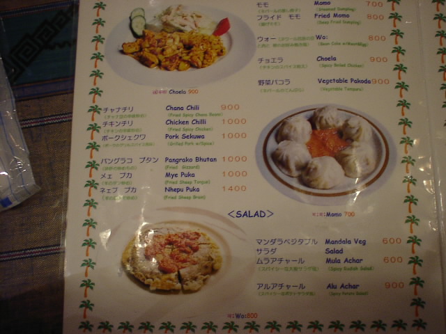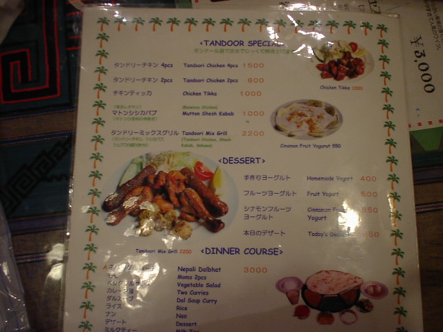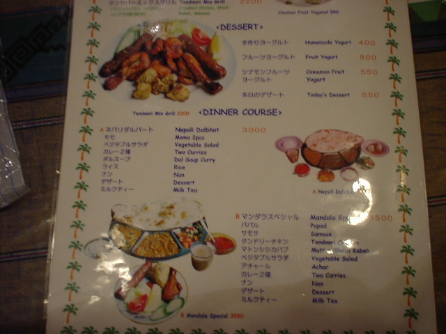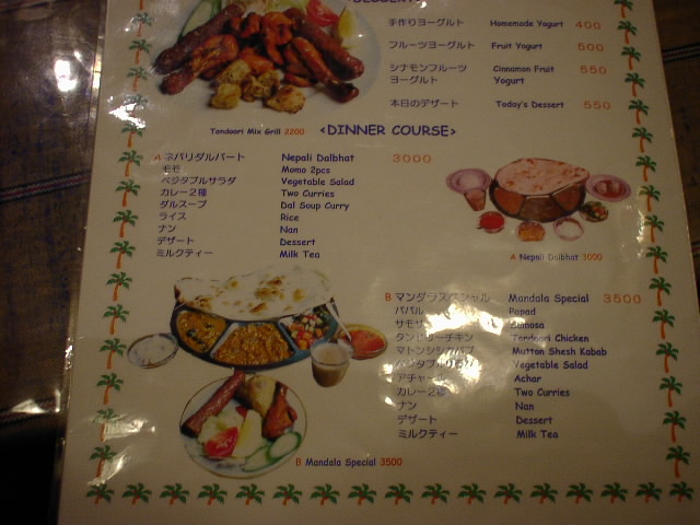 2002/1/19: マンダラのメニュー