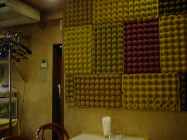 壁面の卵ケースは防音のためでしょうか、それともピータンが埋まっているのでしょうか。(い)