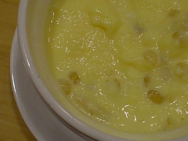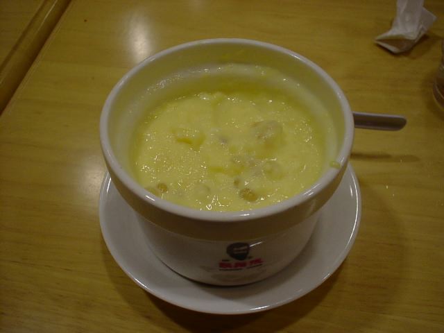 - タピオカとバナナがあったかいカスタードの中に入っています。おいしいです。