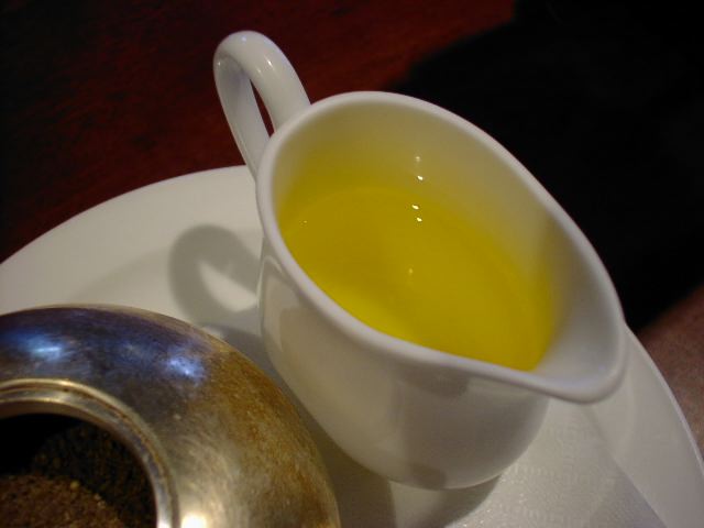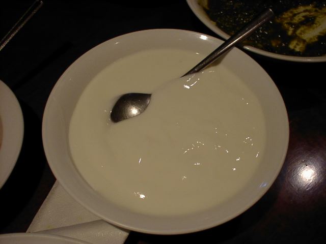 - テーブルに運ばれた時、いっちゃんに「ギーは時間が経つと固まるのか?」とたずねられた折りに「ここのお店のギーが固まったの見たことないから、すっごくいい油脂使ってるか抽出や精製がすっごくていねいに上澄みのみ抽出すると固まらないのかも」と勝手な憶測で話してましたが、皆が満腹になる最後の方はやはり固まってました。いい加減なこと言ってすみません。(az)