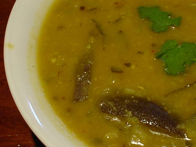 - 具はナスを用いた定番のサンバル。トゥール・ダルが幾分形を残しながらも、タマリンドの酸味が程よく効いて、口当たりはまろやか。ラッサムと一緒にライスに混ぜて、上からパパドをふりかけると最高。(ina)