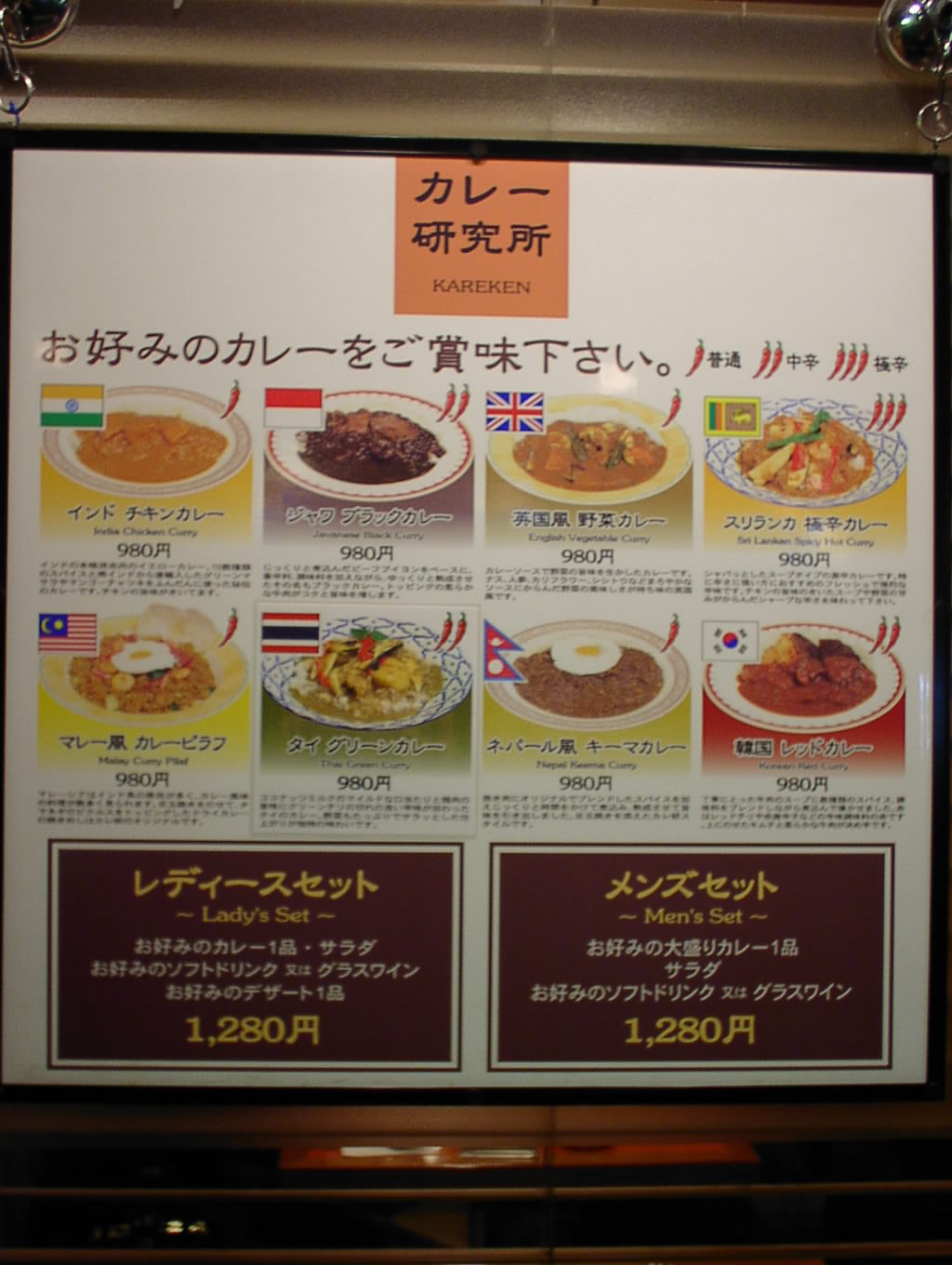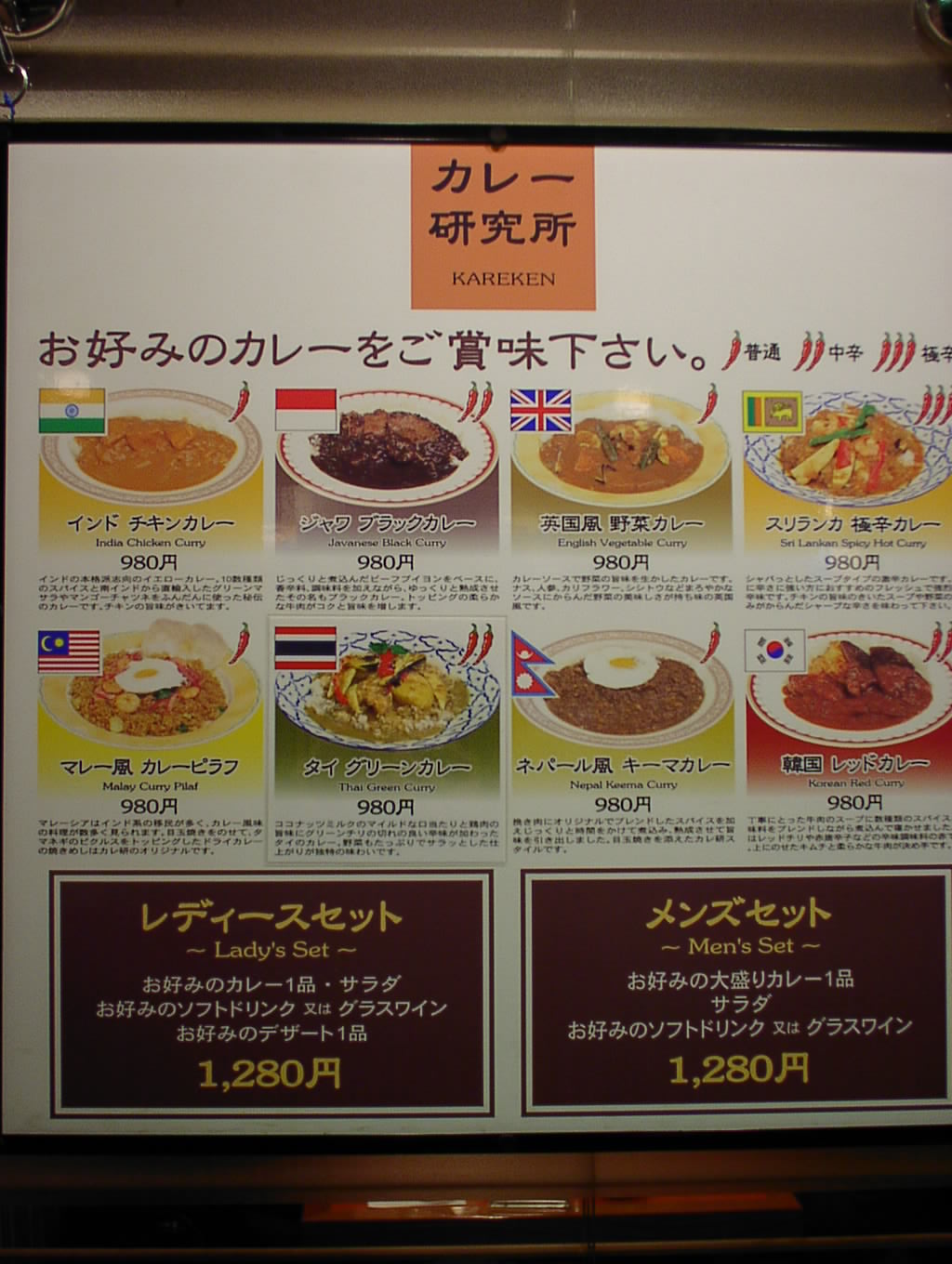2002/3/23: カレー研究所のメニュー