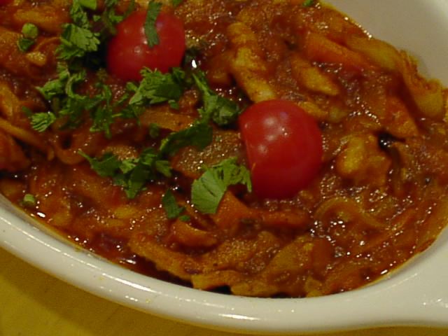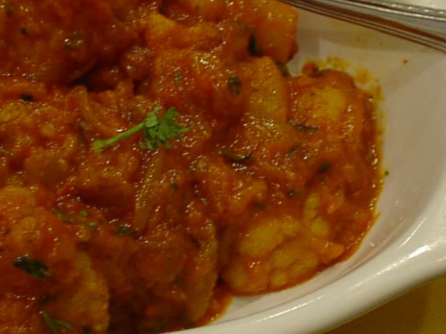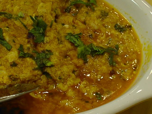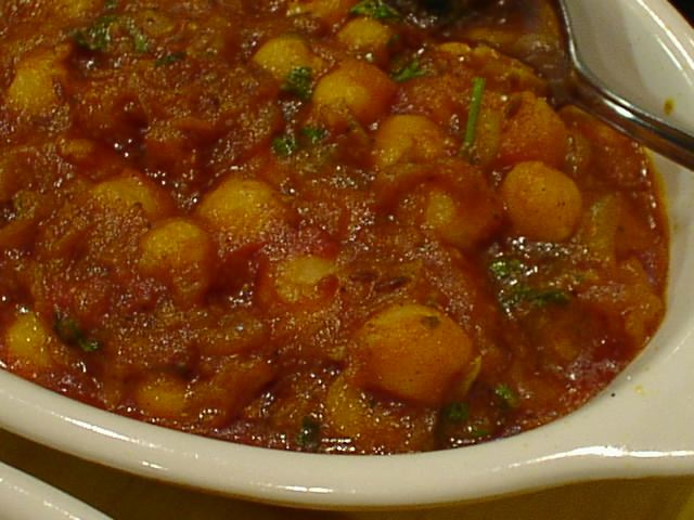 - 他の店でもそうだけど、特に女性に人気がある料理。もちろん店によって味付けがことなる。ホクホクしたチャナ豆の食感と、ほどよい甘さが魅力的であろうか。マサラに使用しているトマトが少々多めなので、バランスを欠いてしまっているのが残念。(ピ)