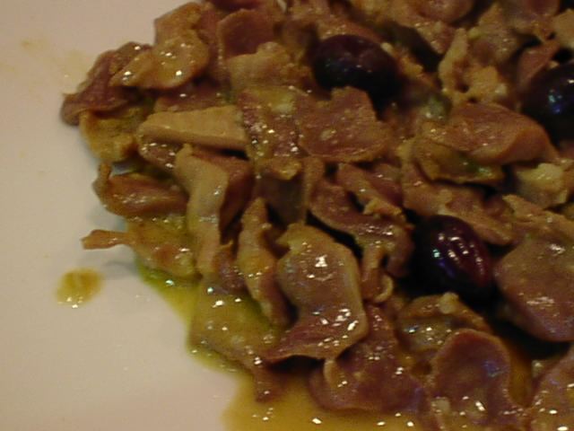 - わたしはこれがとても気に入りました。お家で砂肝を使った献立はいつもワンパターンなので、まねしてみようと思います。白ワイン、バター、にんにくをつかって煮込んであるんですね。スライスした砂肝が食べやすい。(よ)