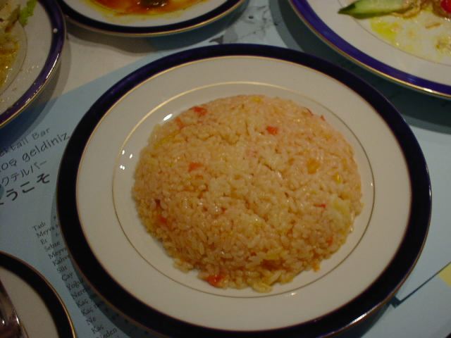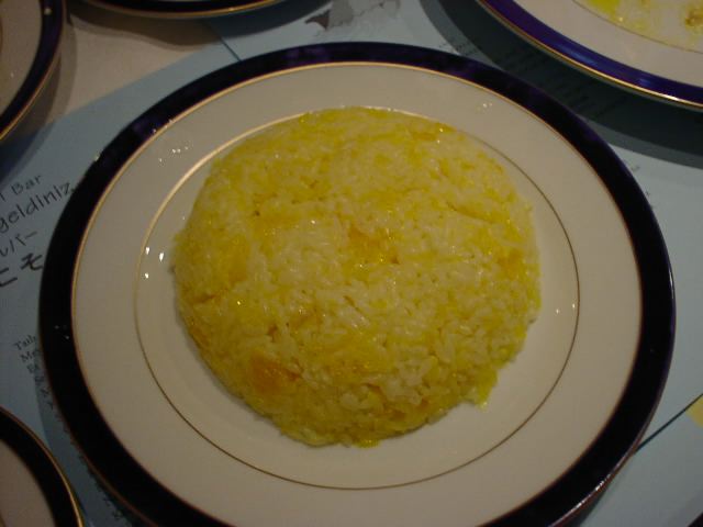 - オレンジのピラフなんですよ。食べる前はお菓子みたいなピラフかと想像してたけど、なかなかしっかりご飯って感じ。(JK)