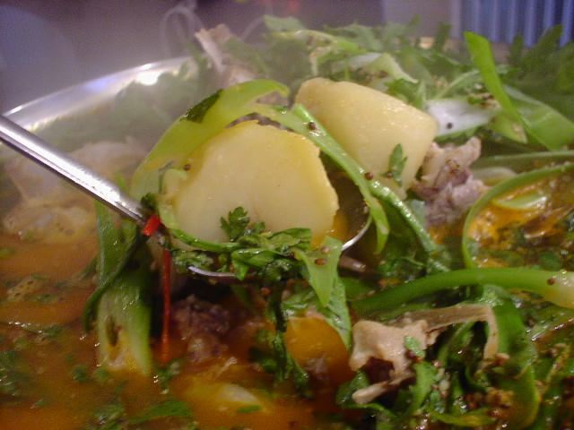 - すごいボリュームででてきました。あらかじめ火が通してあって、上の菜っぱは火が通るとぺちゃんこになります。