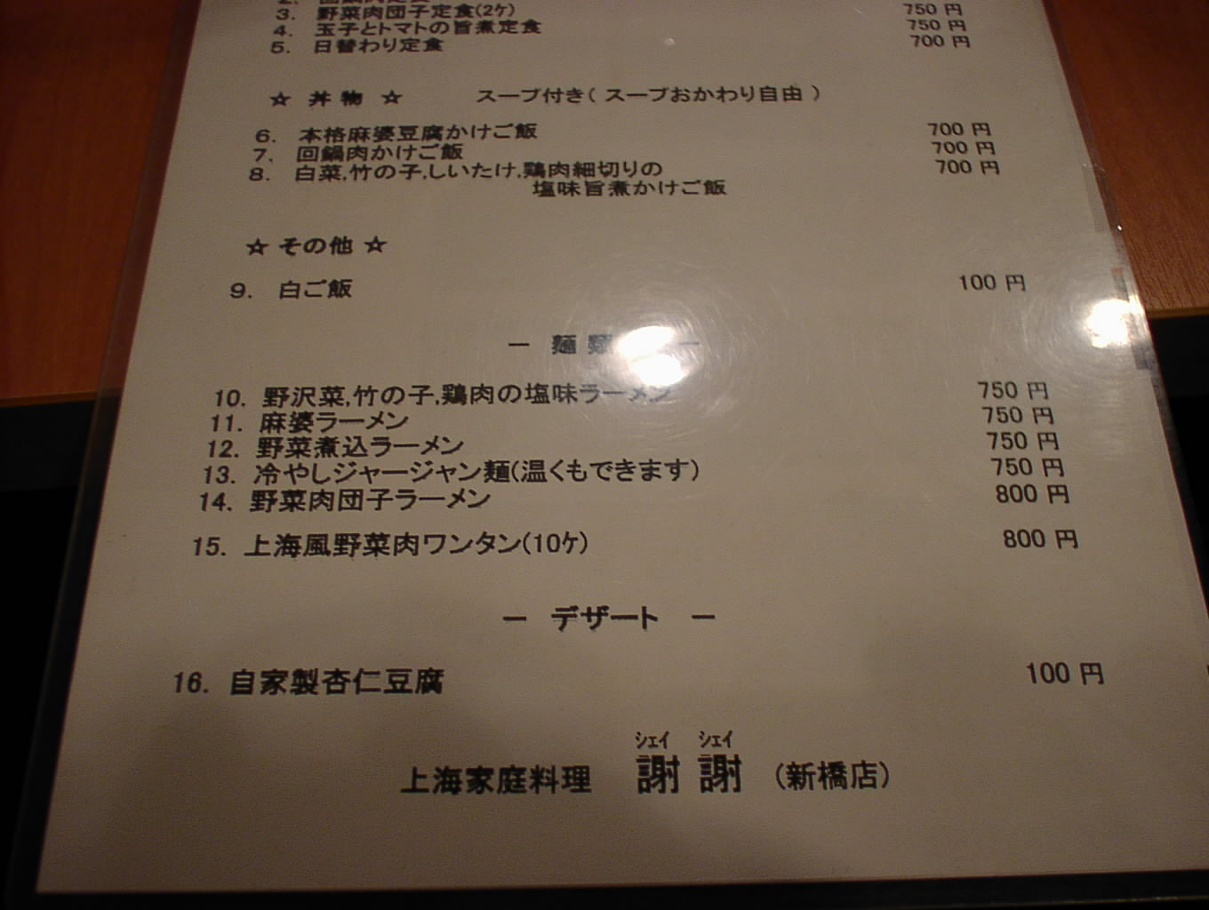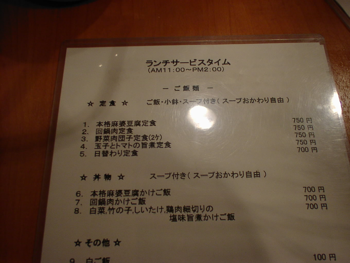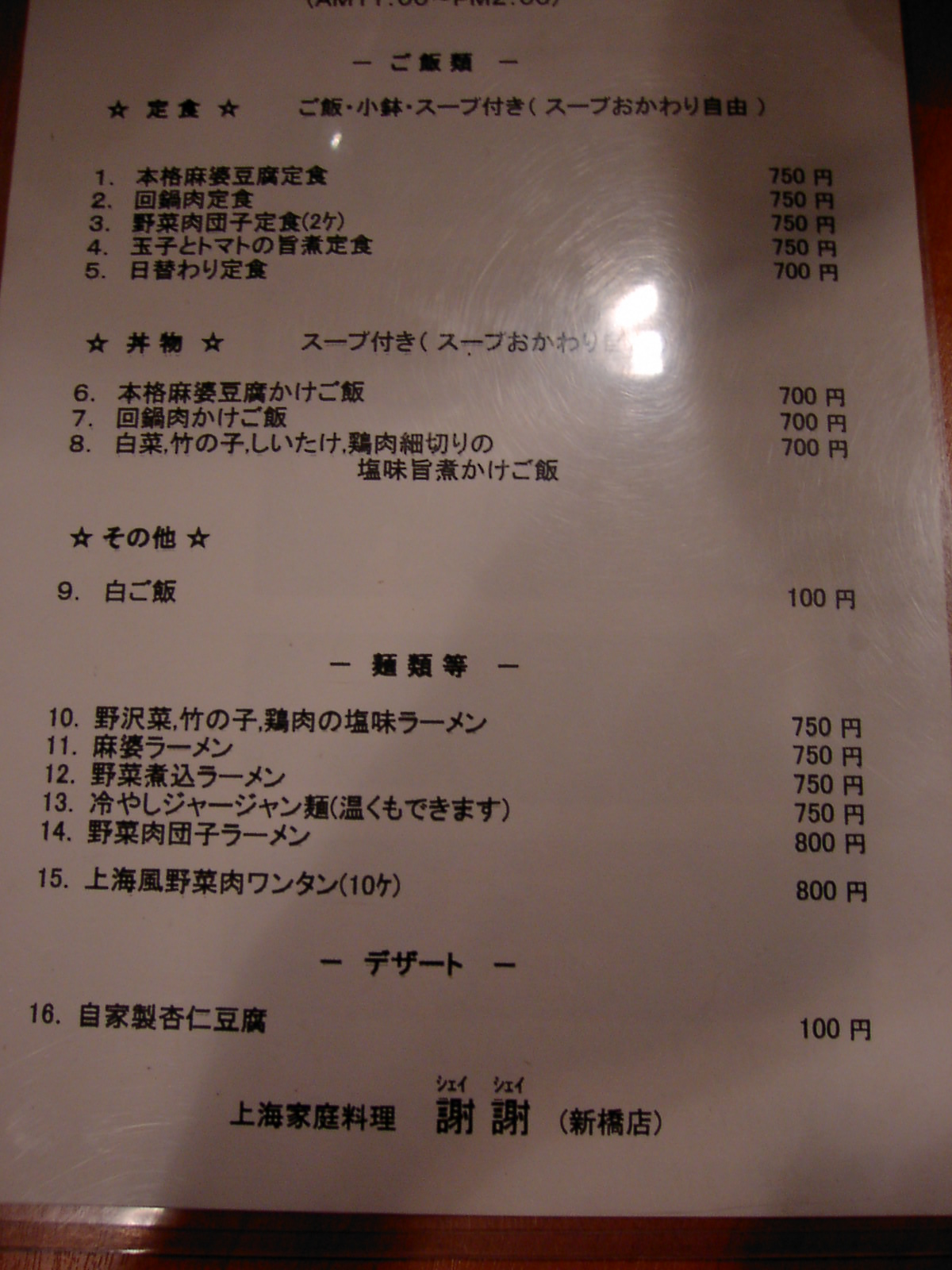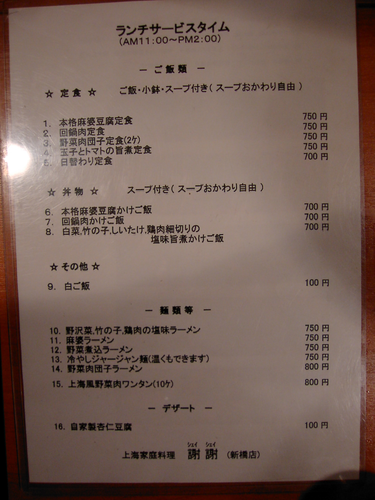 2002/6/29: 謝謝のランチタイムのメニュー