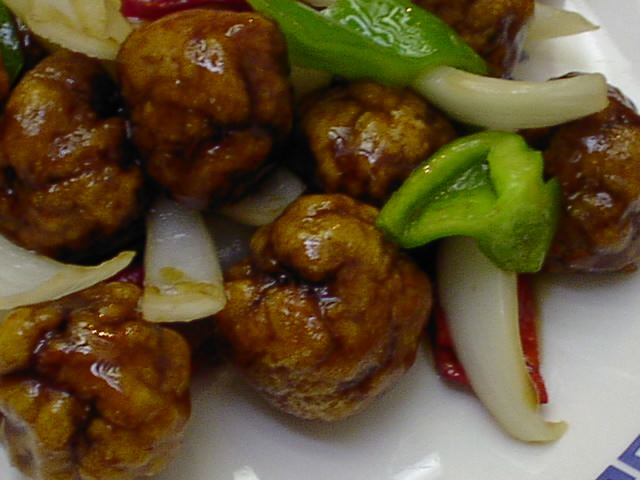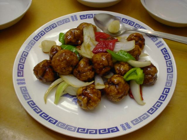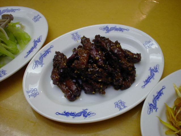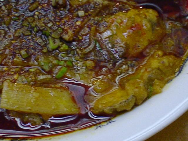 - たぶん野菜やエビを揚げてあるんですよね。それを熱々の鍋でテーブルまで持ってくる、という、初めてお目にかかる料理でした。唐辛子、ニンニク、ショウガ、などたくさん入ってるんですが、全体に丸く収まった美味しさ、って感じで素晴らしい一品です。(JK)