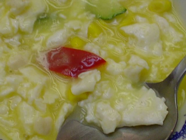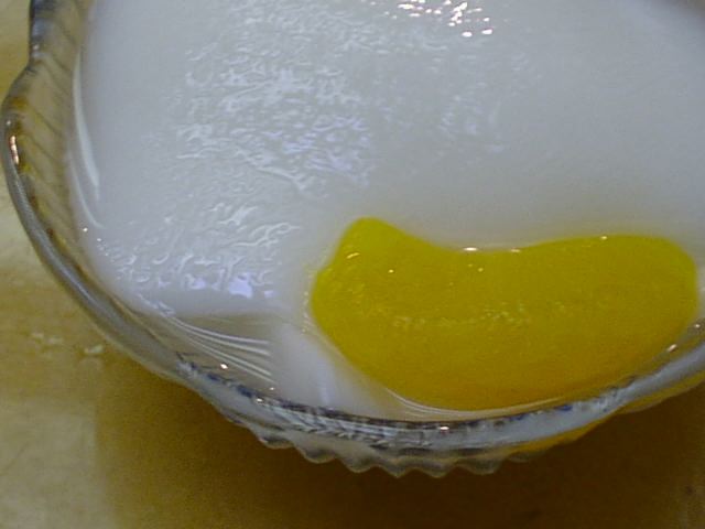 - 真ん中にある卵黄を混ぜてからいただきます。崩し豆腐に見える白い物体は、卵の白身です。適度なとろみがついていて優しいお味。(あ)