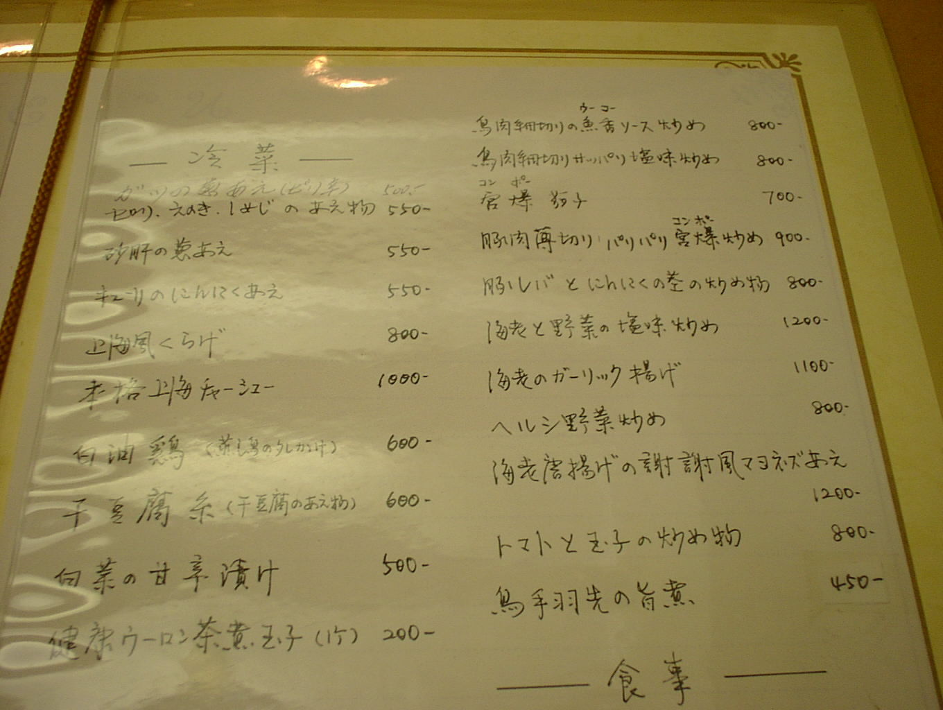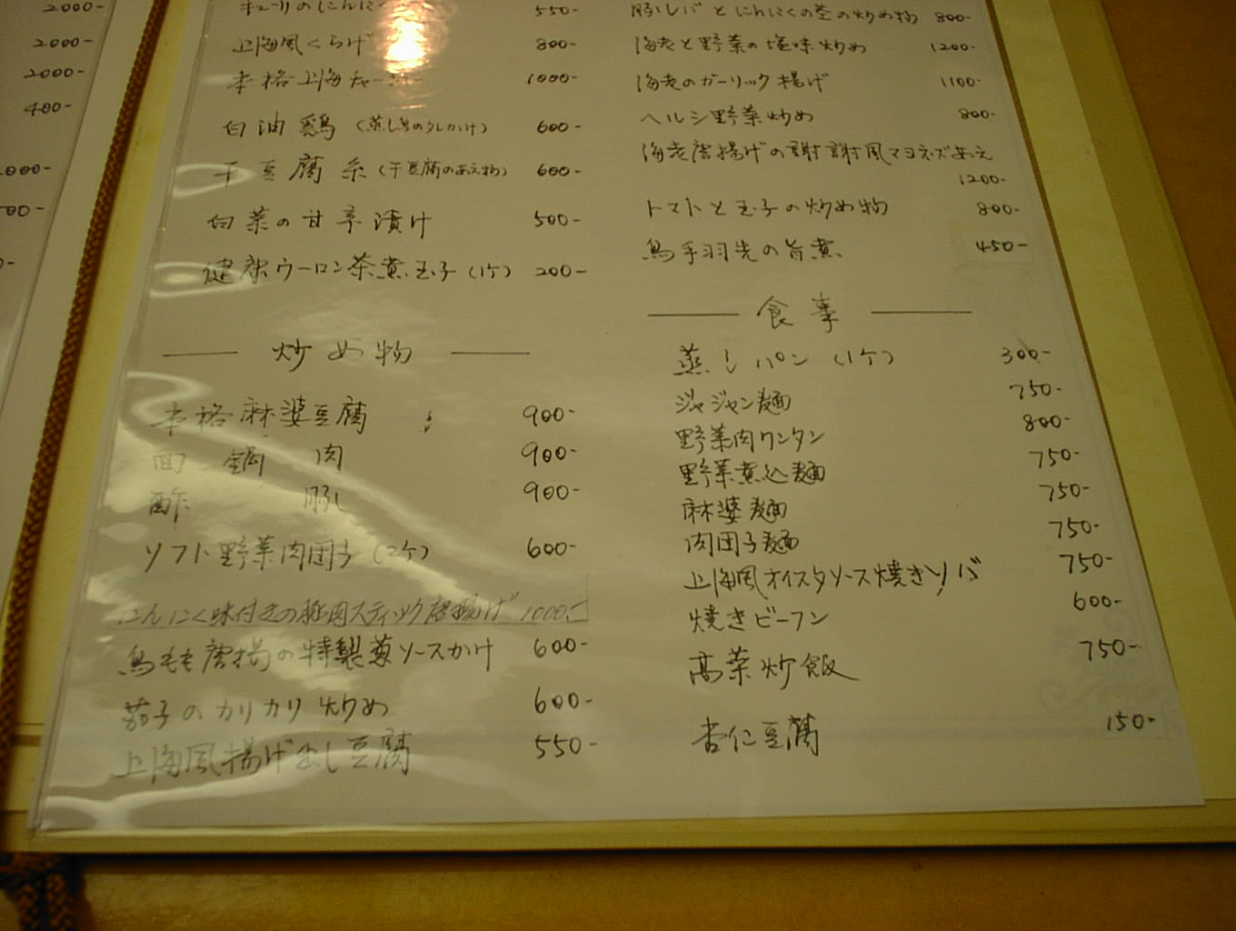 2002/8/10: 謝謝のメニュー