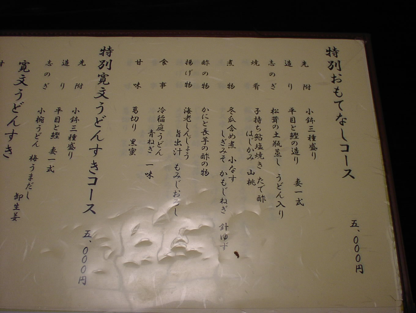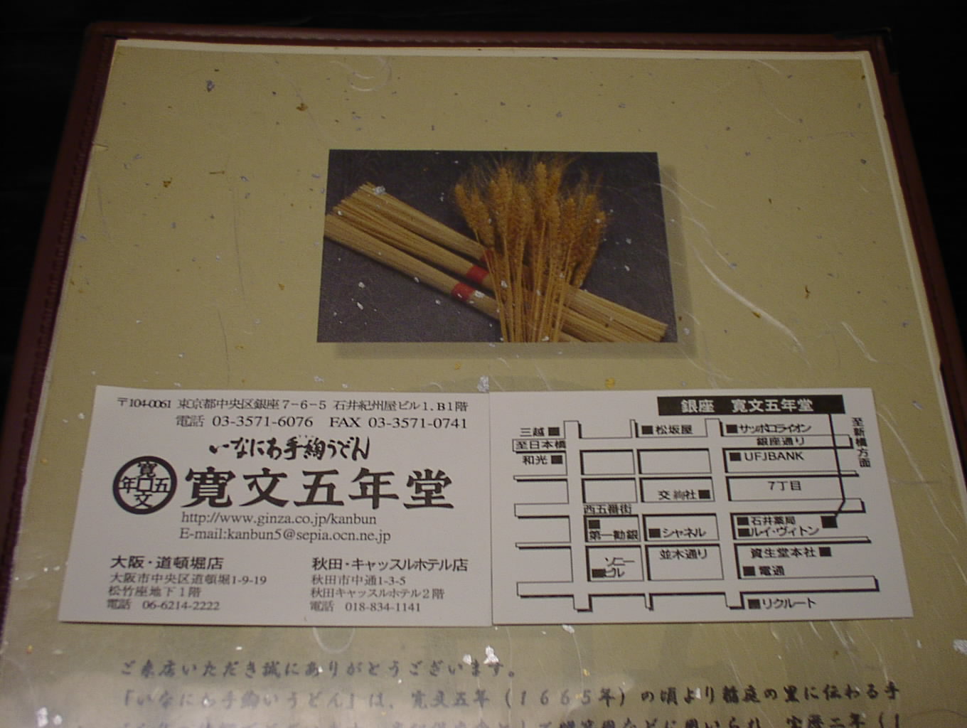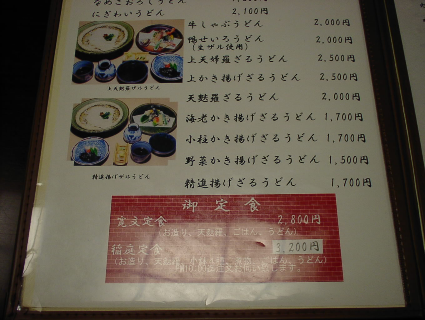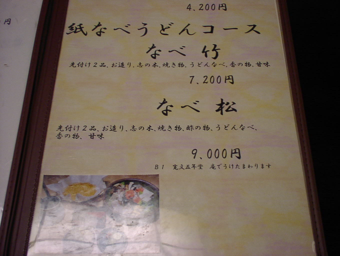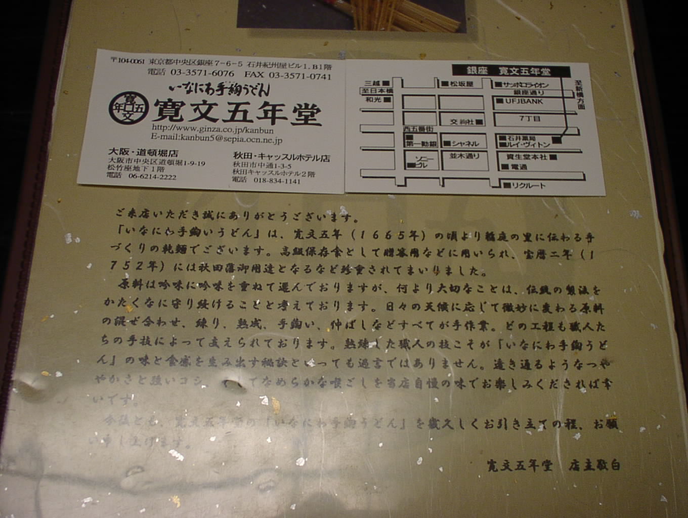 2002/8/24: 寛文五年堂東京銀座店のメニュー