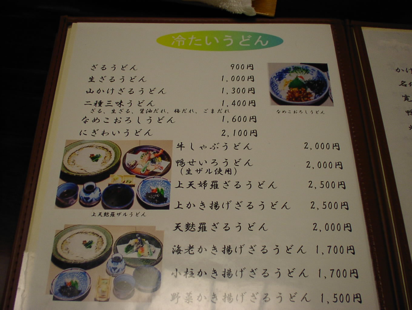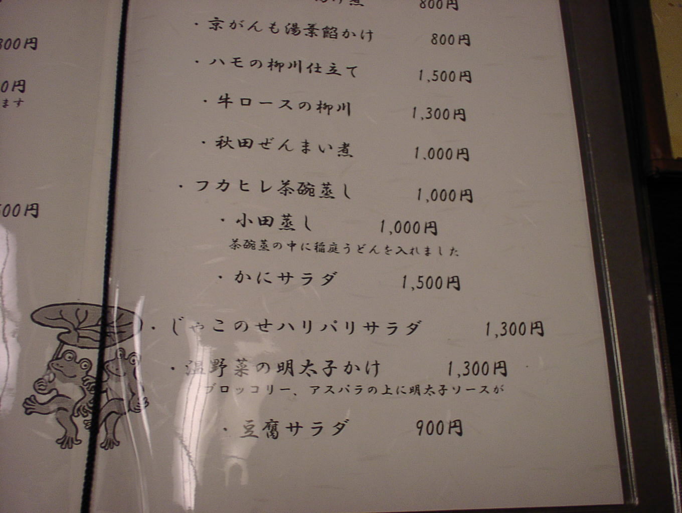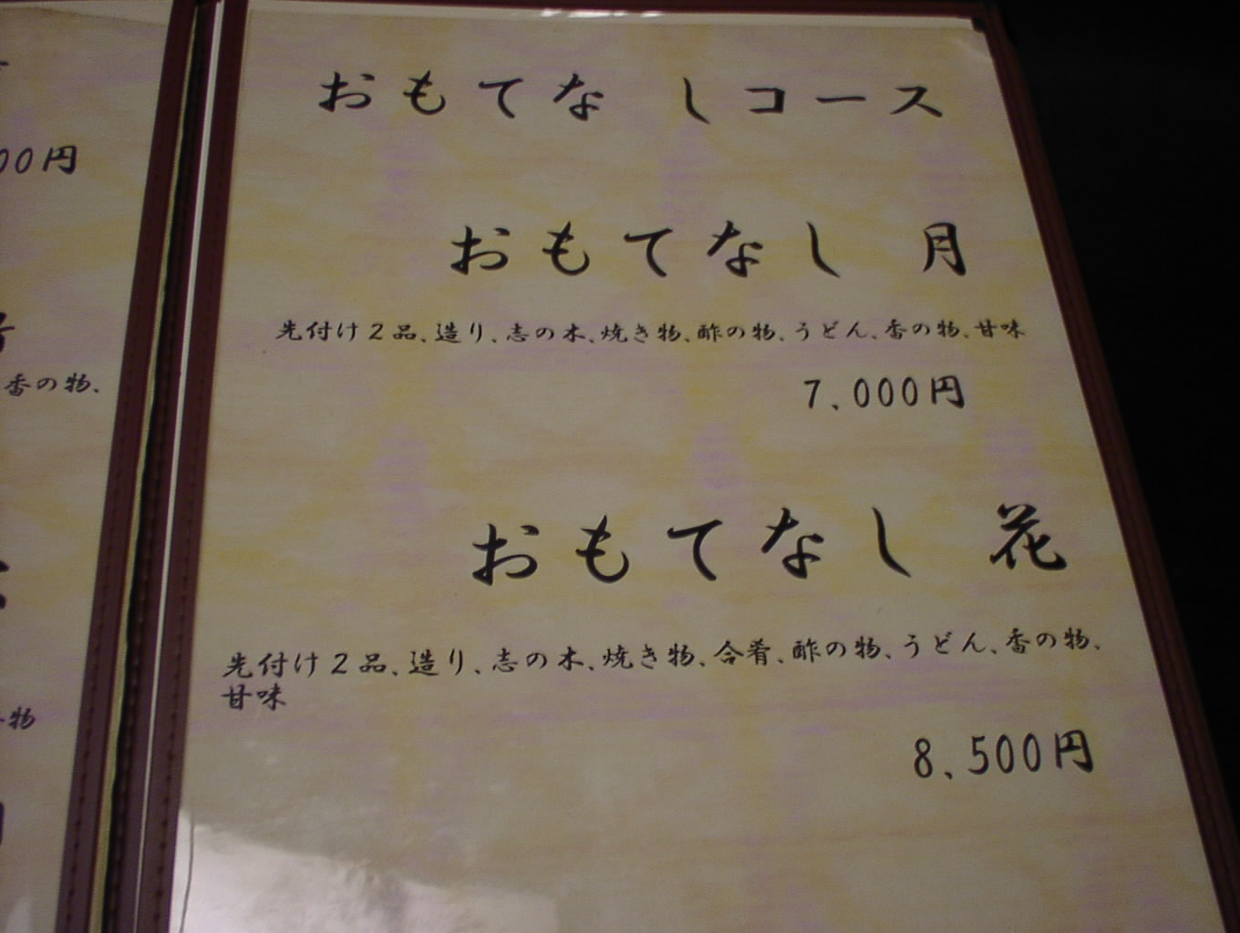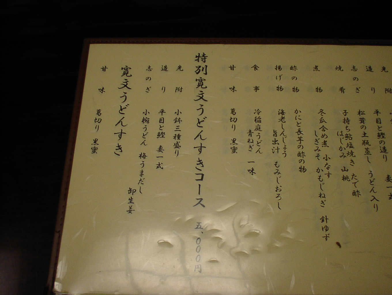 2002/8/24: 寛文五年堂東京銀座店のメニュー