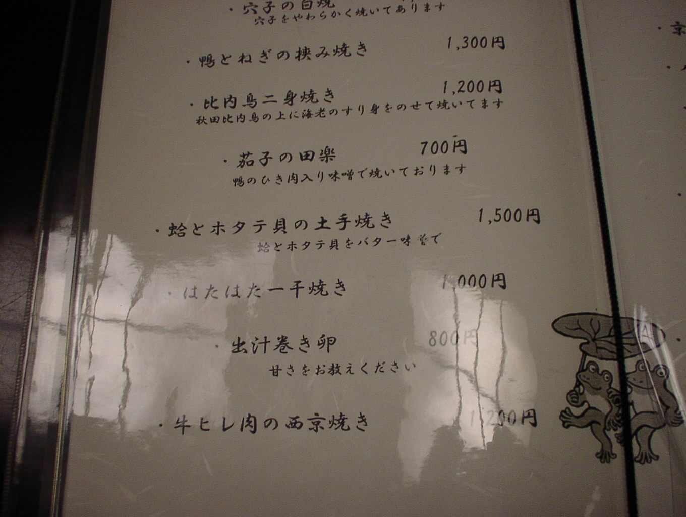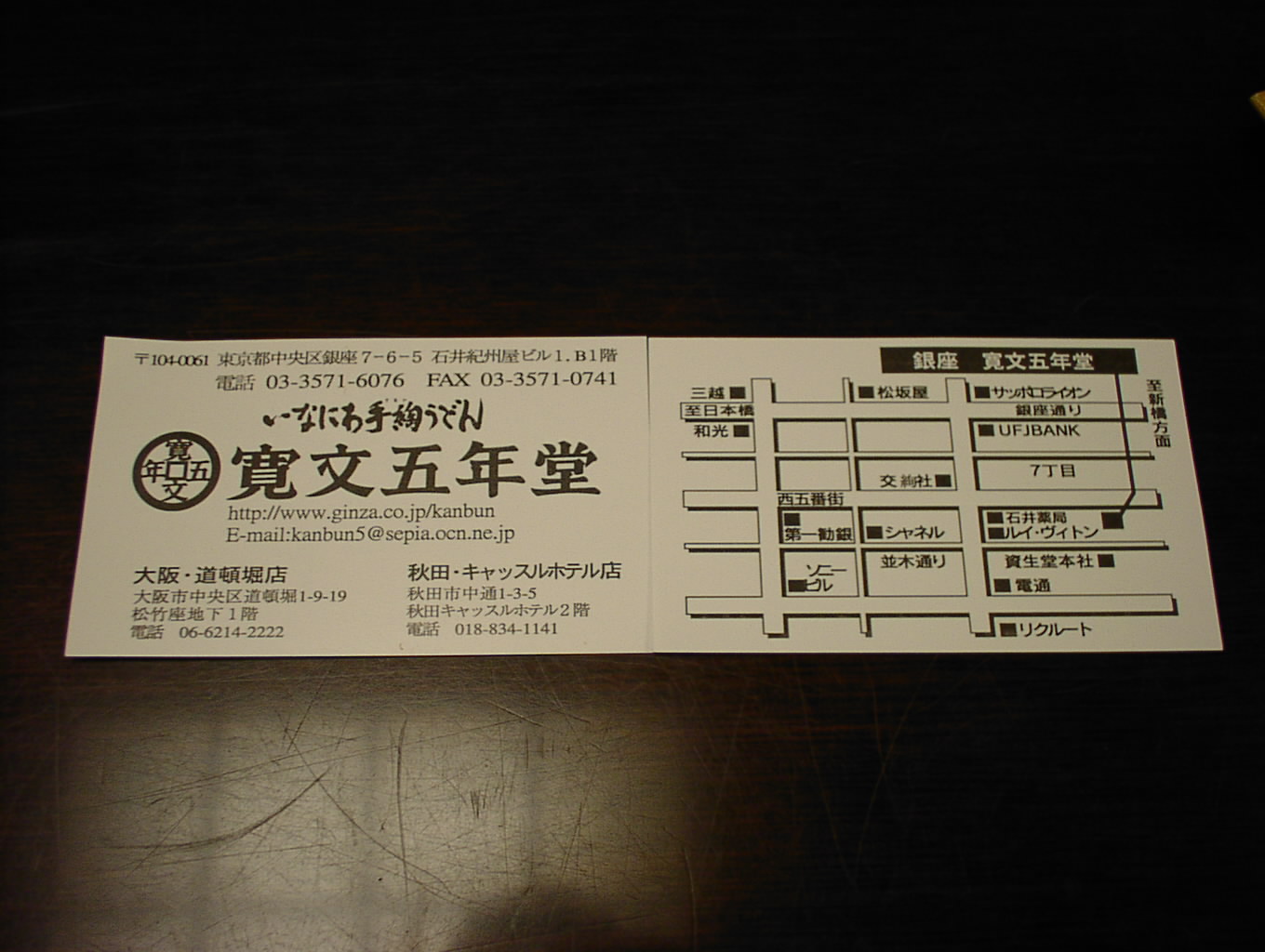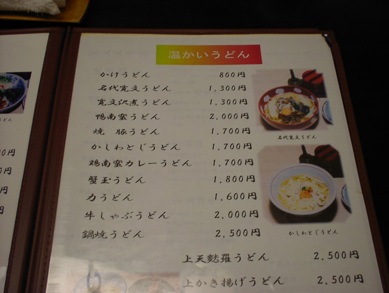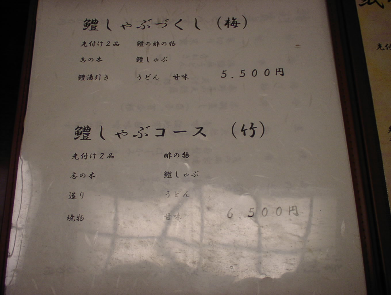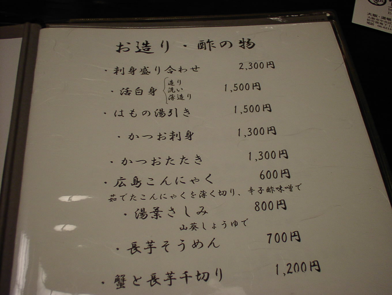 2002/8/24: 寛文五年堂東京銀座店のメニュー