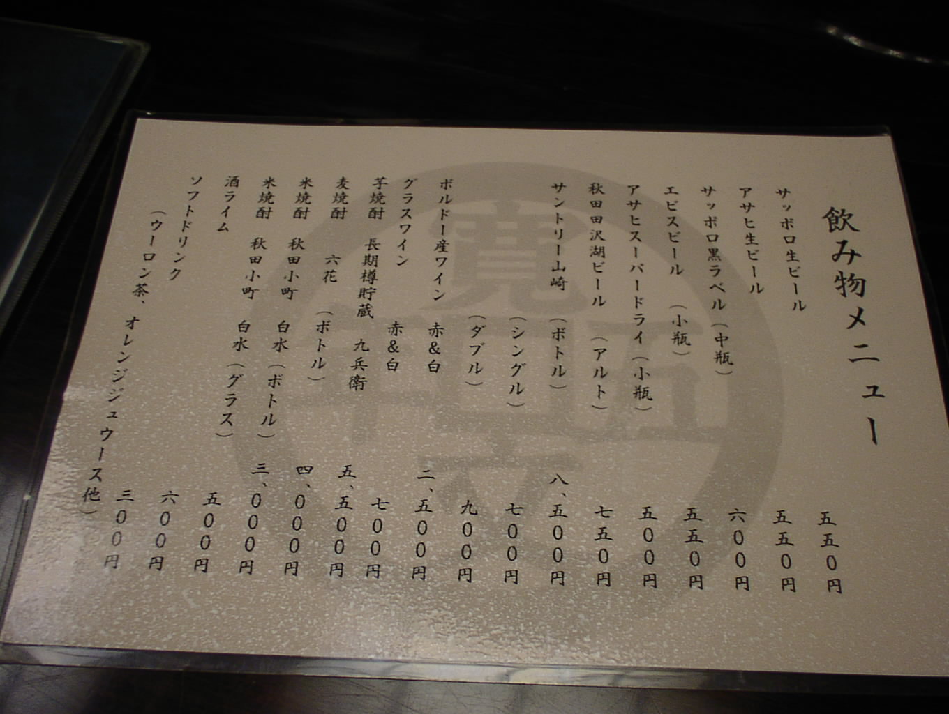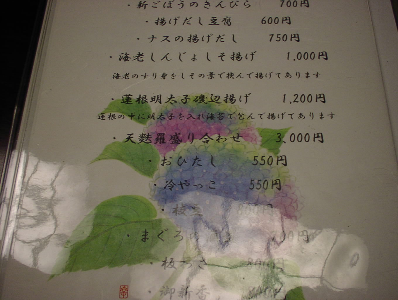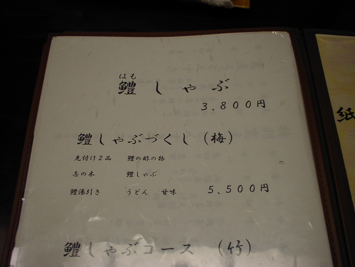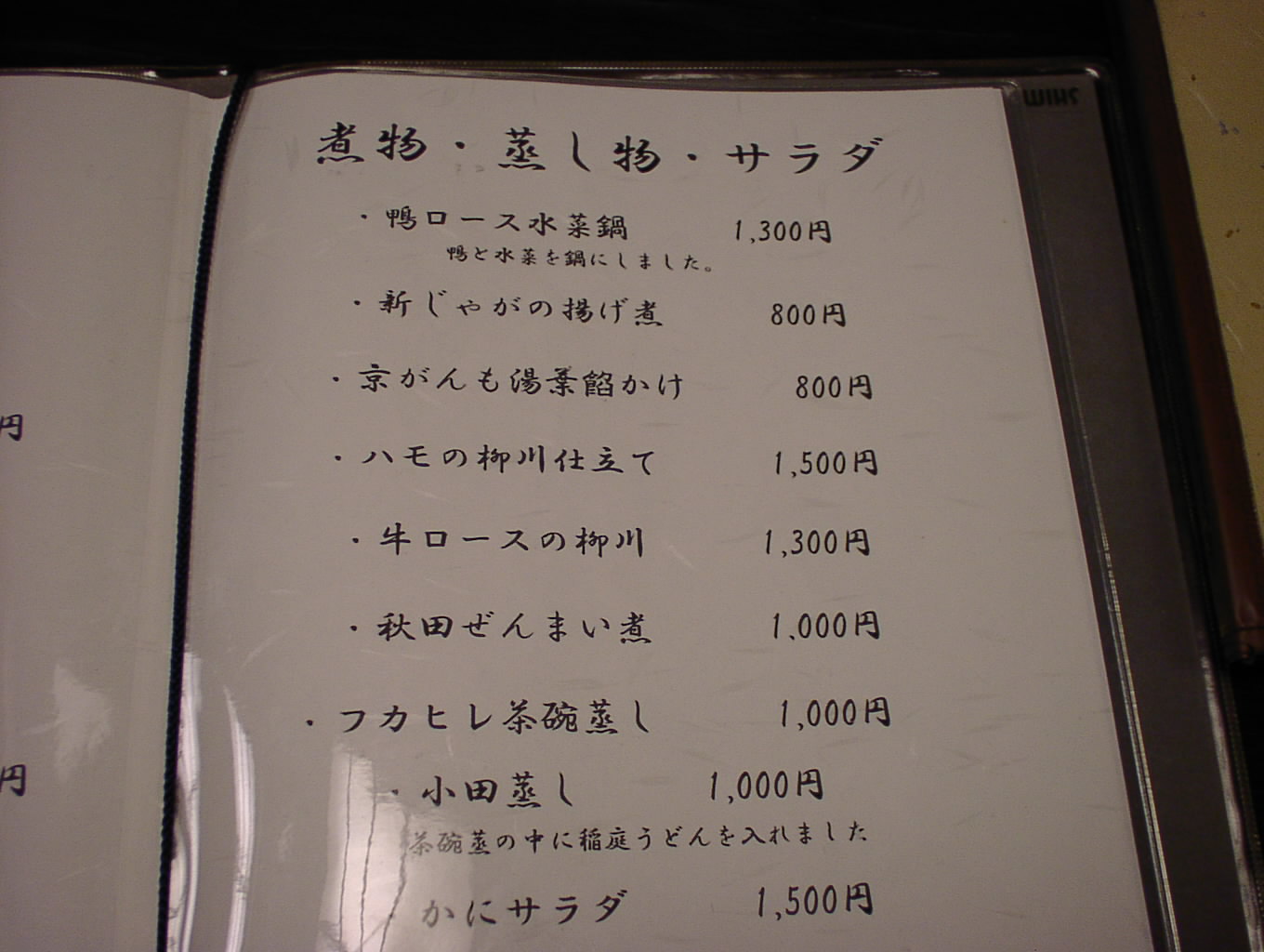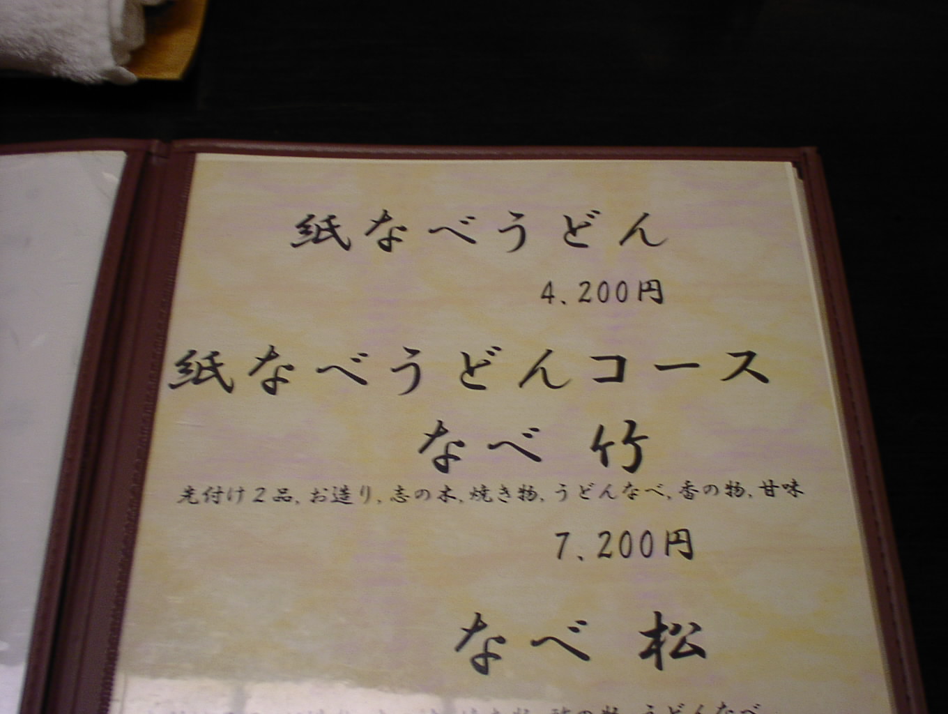 2002/8/24: 寛文五年堂東京銀座店のメニュー