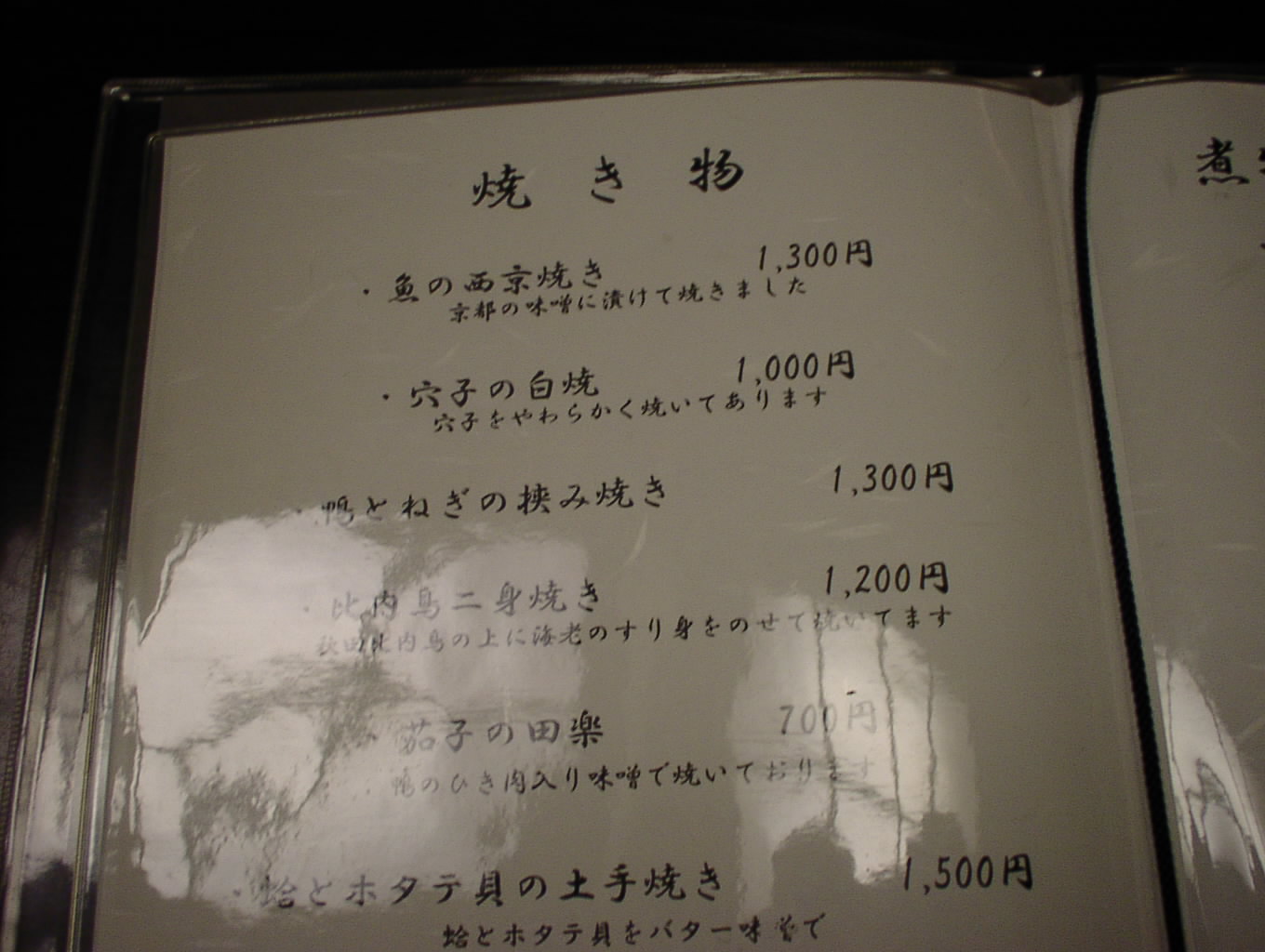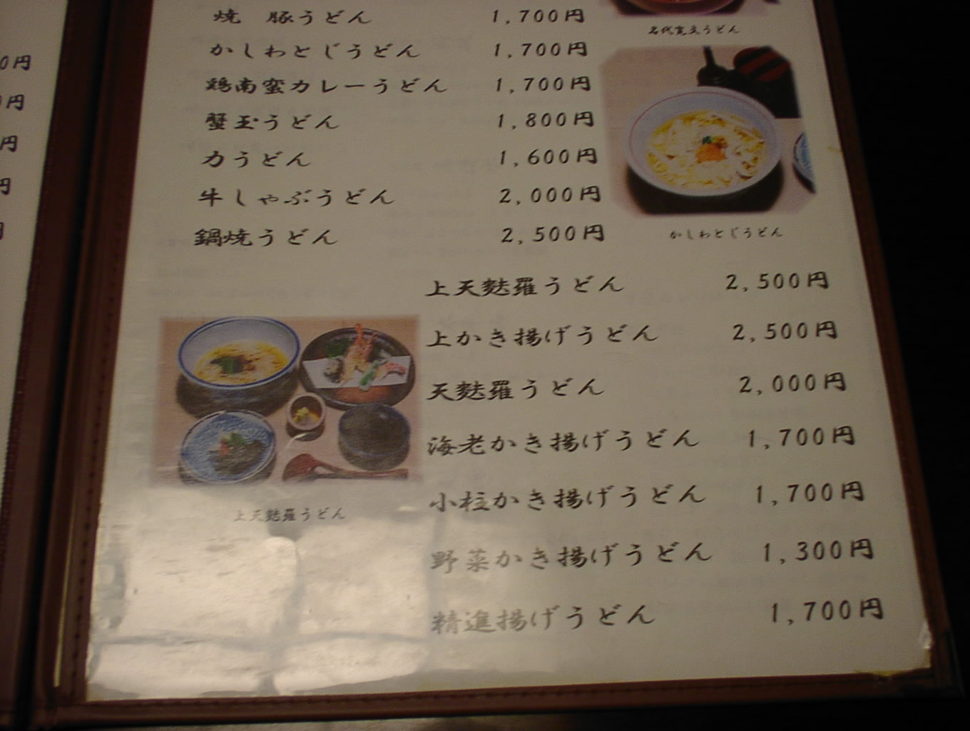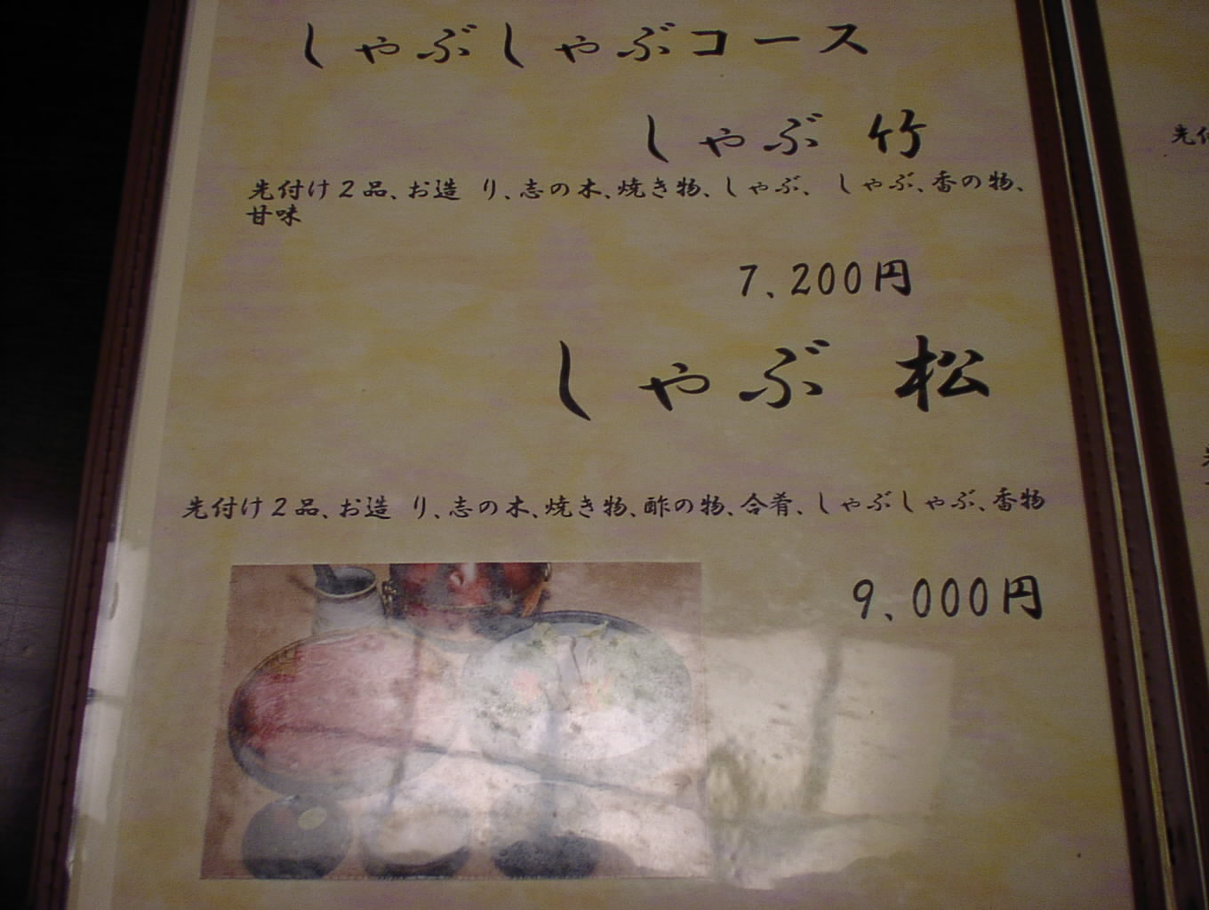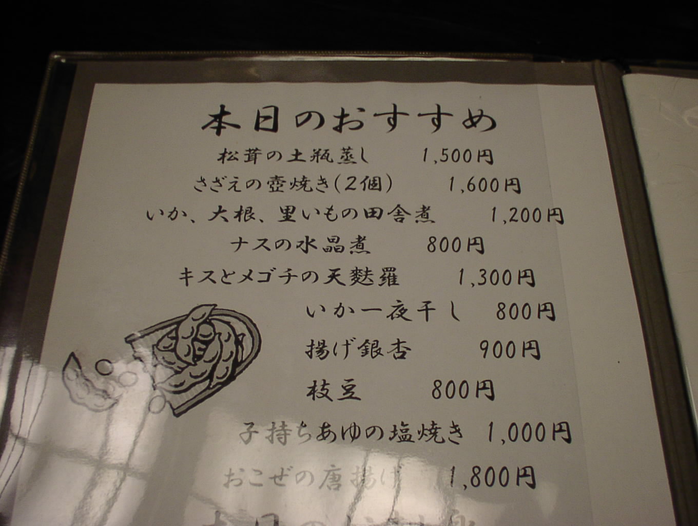 2002/8/24: 寛文五年堂東京銀座店のメニュー