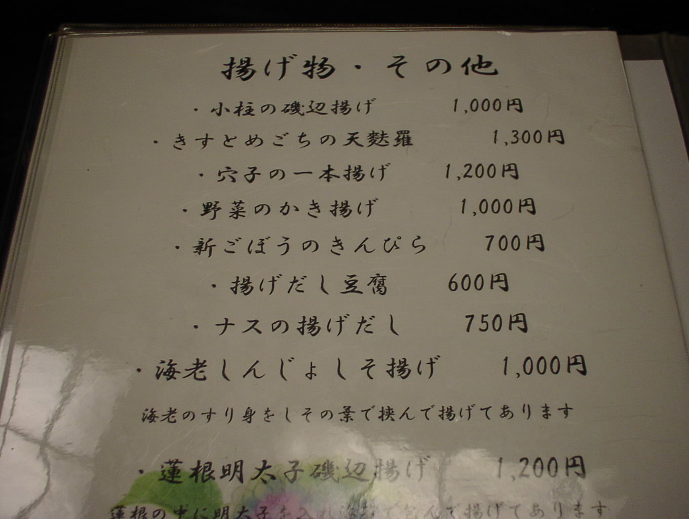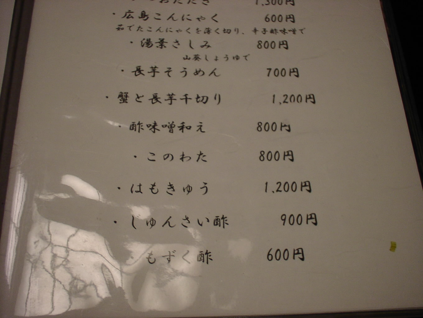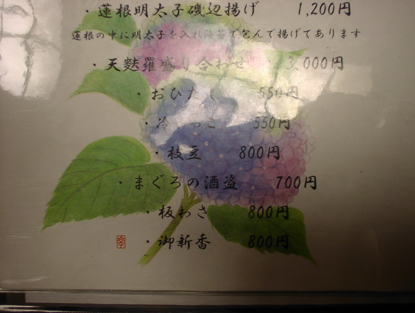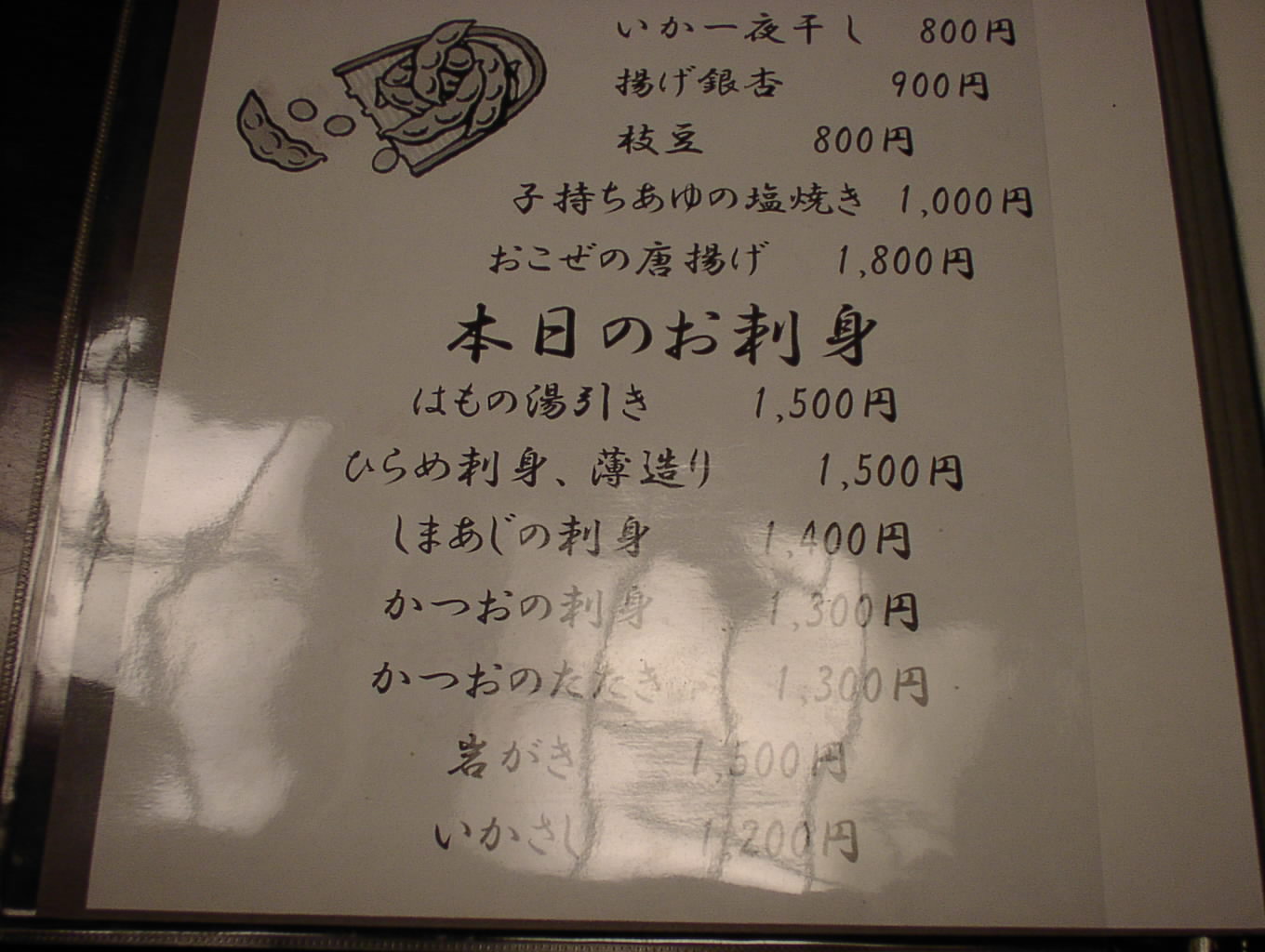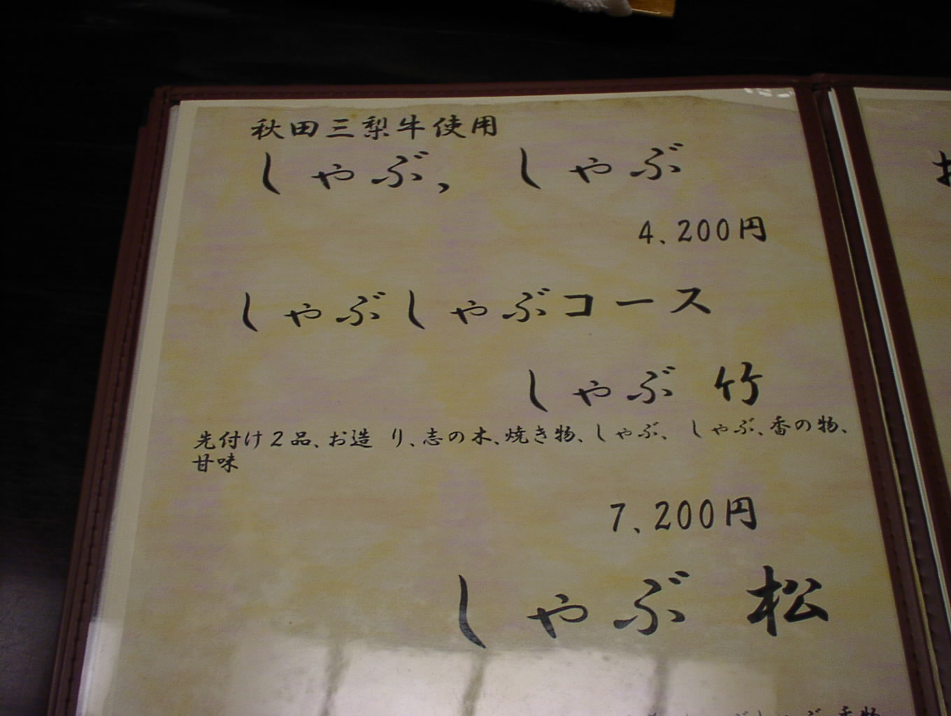 2002/8/24: 寛文五年堂東京銀座店のメニュー