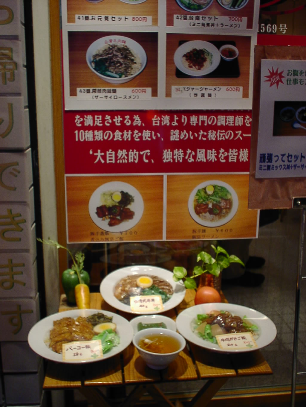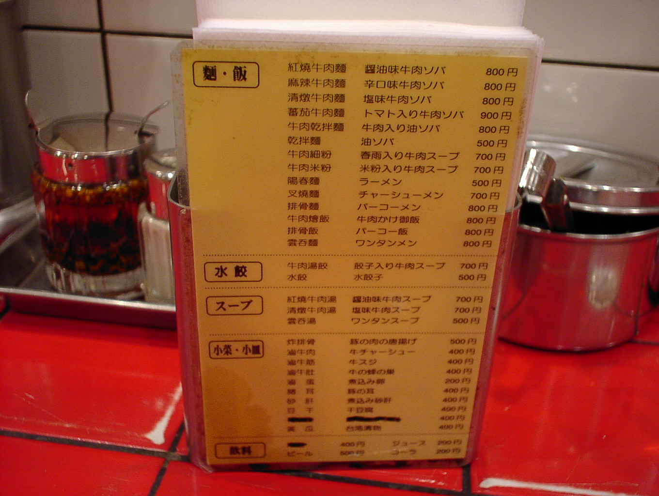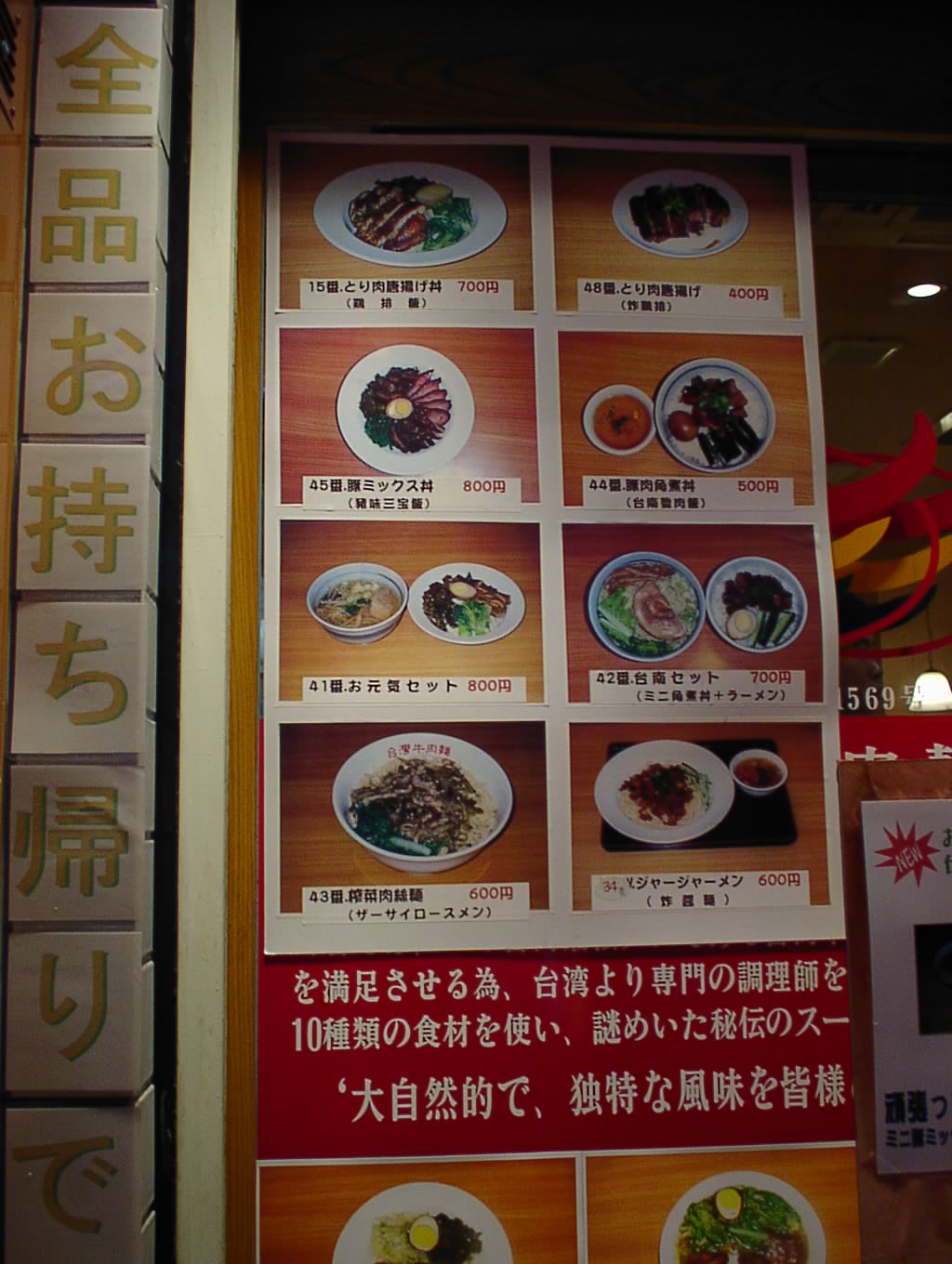 2002/9/28: 台湾牛肉麺のメニュー