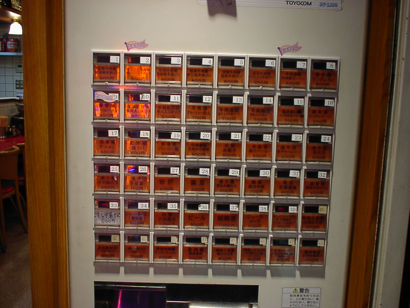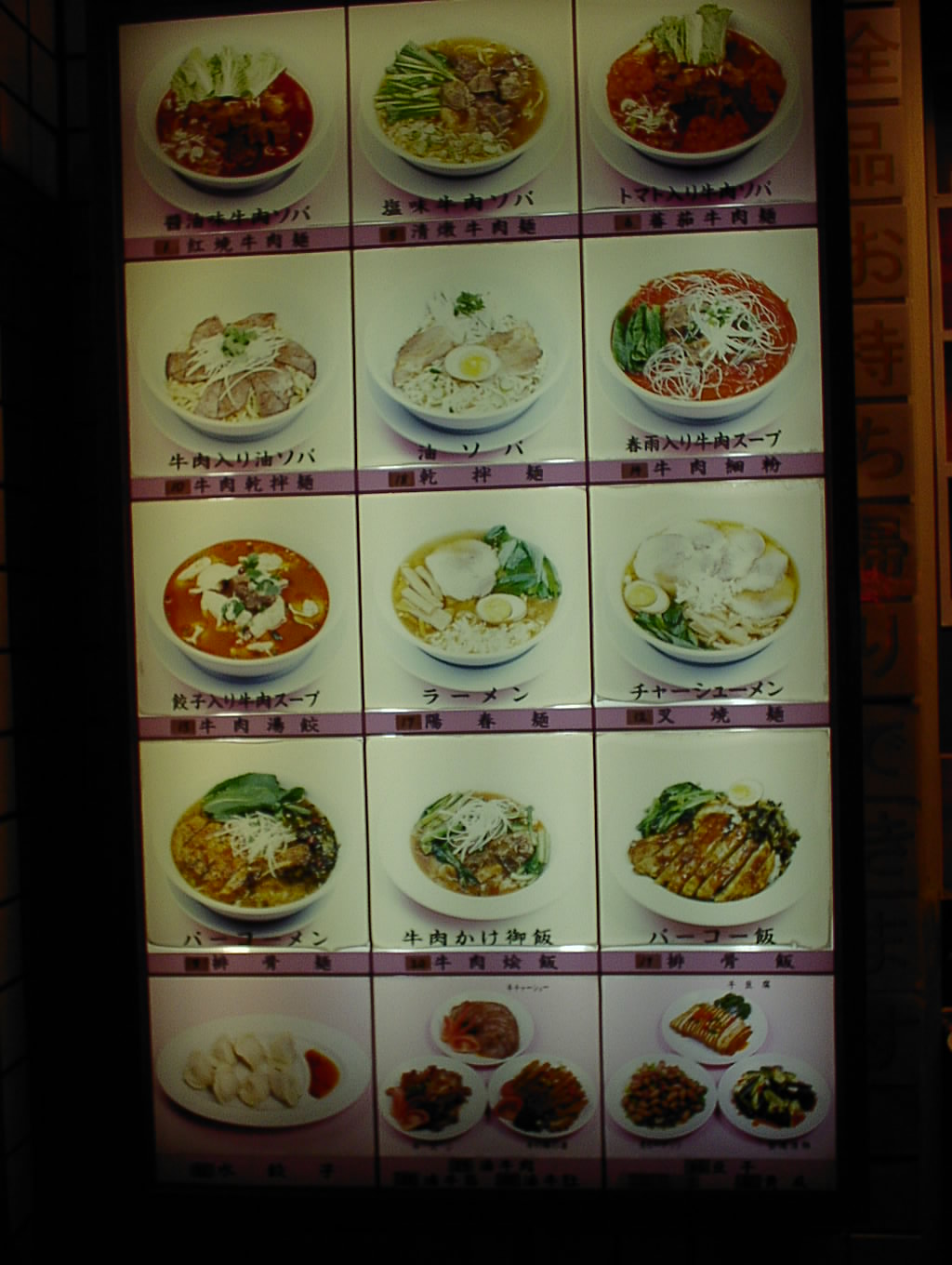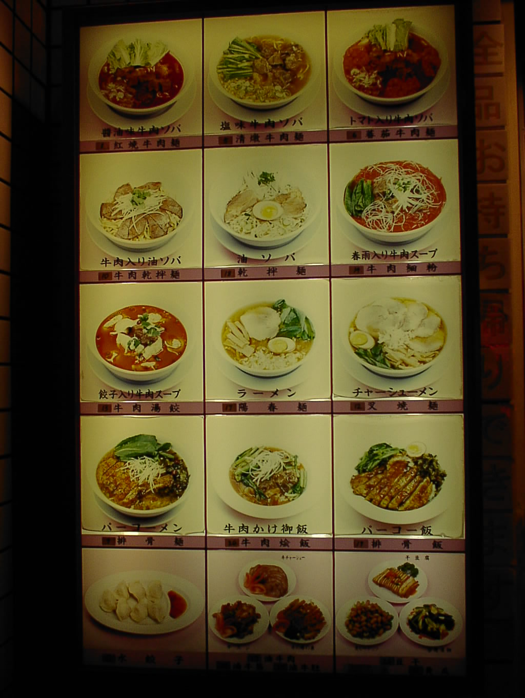 2002/9/28: 台湾牛肉麺のメニュー