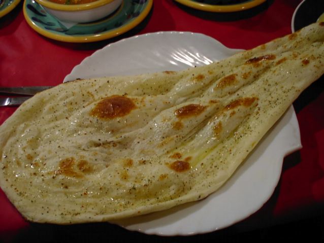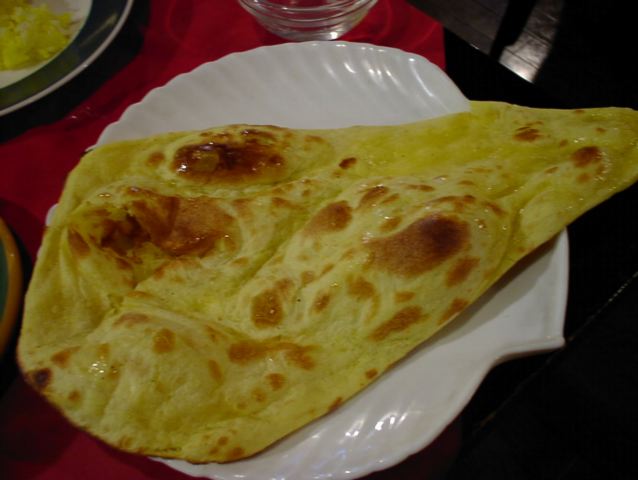 - 不思議だ、このナンにスパイスがかかってるだけなのにかなりおいしい。特にチキンカレーとの組み合わせはうなるほど。どちらもスパイスが主張してるのにその主張がぴたりマッチング!。ダルカレーとあわせてももちろん、おいしい。ダルの優しい味の中から出てくるスパイスの主張。すばらしい。(ま)