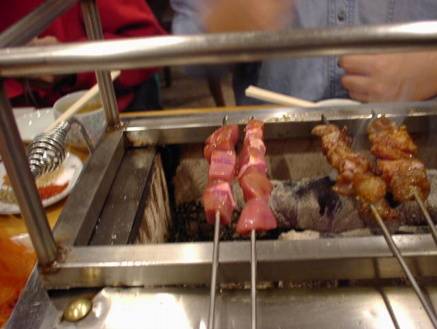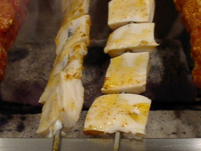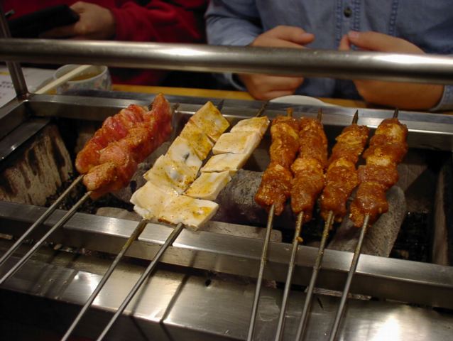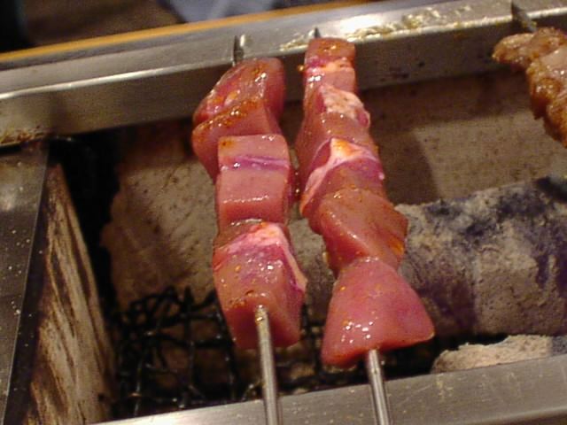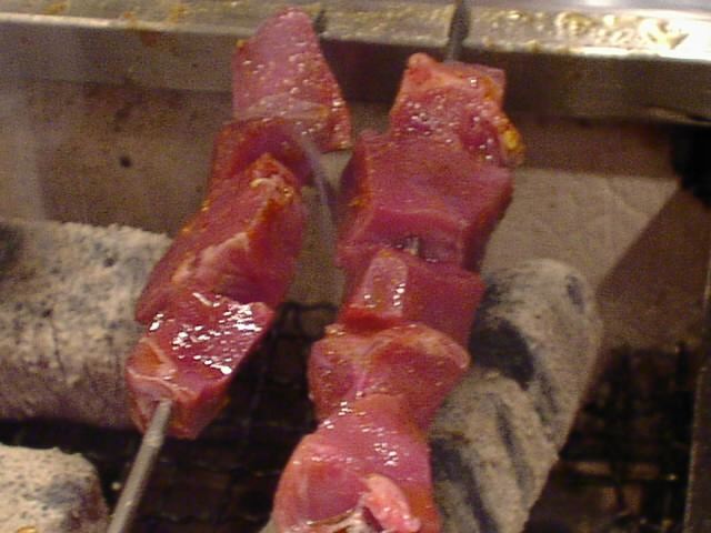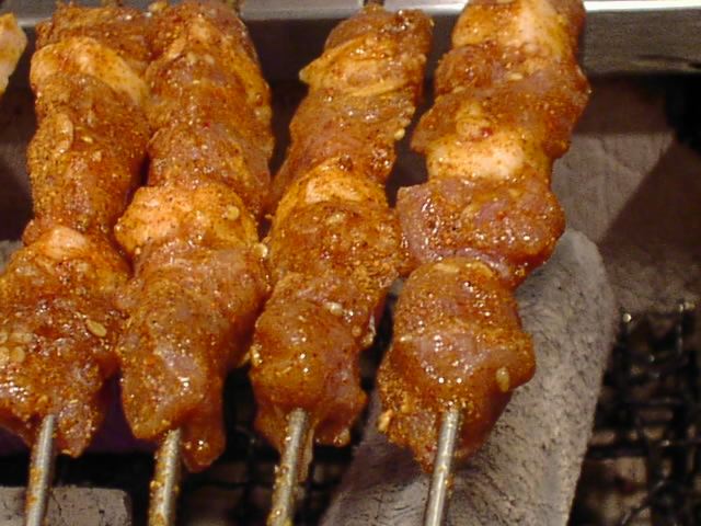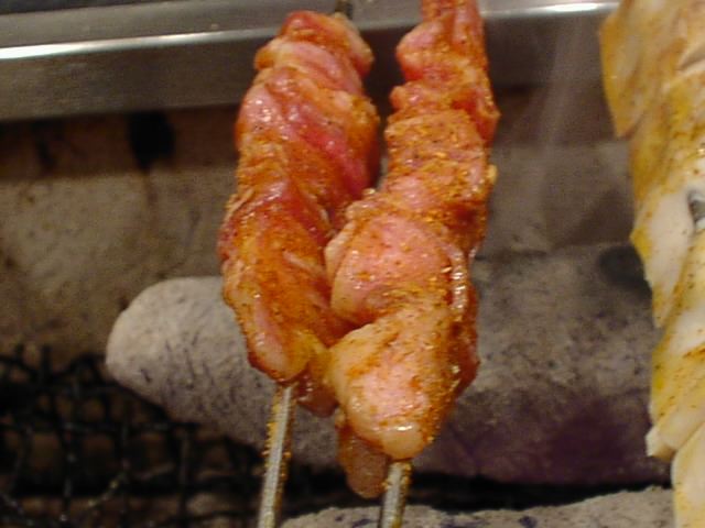 - 肉には結構しっかりと味がついてます。どれもおいしい。金串がつるつる滑べってしまうので両面上手に焼くには技術が要ります。(い)