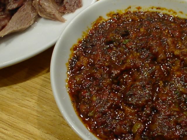 - 生にんにくをかじりながら食べるのだそうですが、ちょっと刺激が強すぎるので慣れてないひとはやめといた方がいいかも。(い)