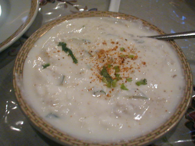 - 非常に粘りのあるヨーグルトです。スパイスもたくさんつかってあって、おいしい。これとビリヤニを混ぜるととても幸せになります。(ま)