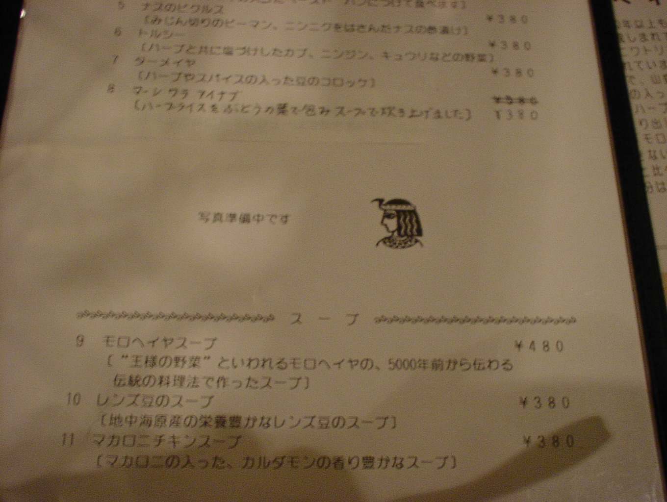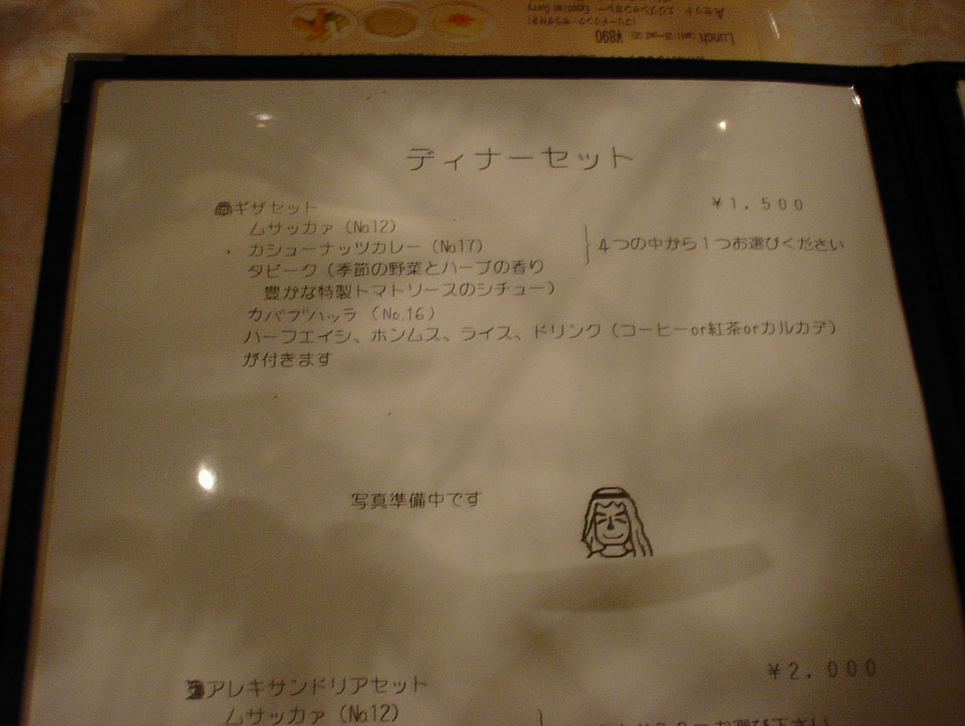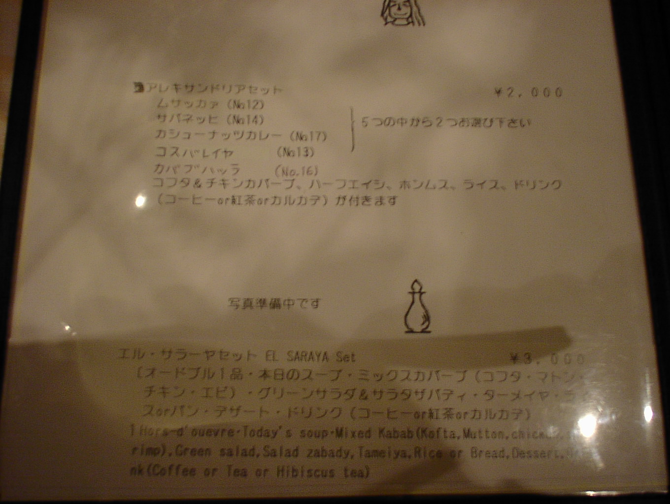 2003/2/15: エル・サラーヤ(EL・SARAYA)のメニュー