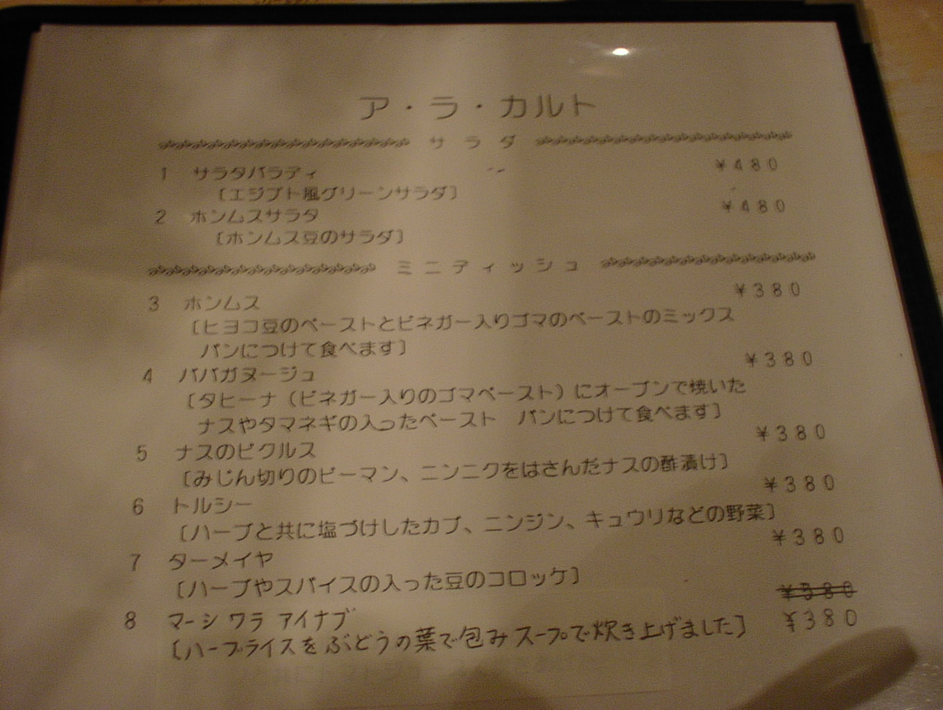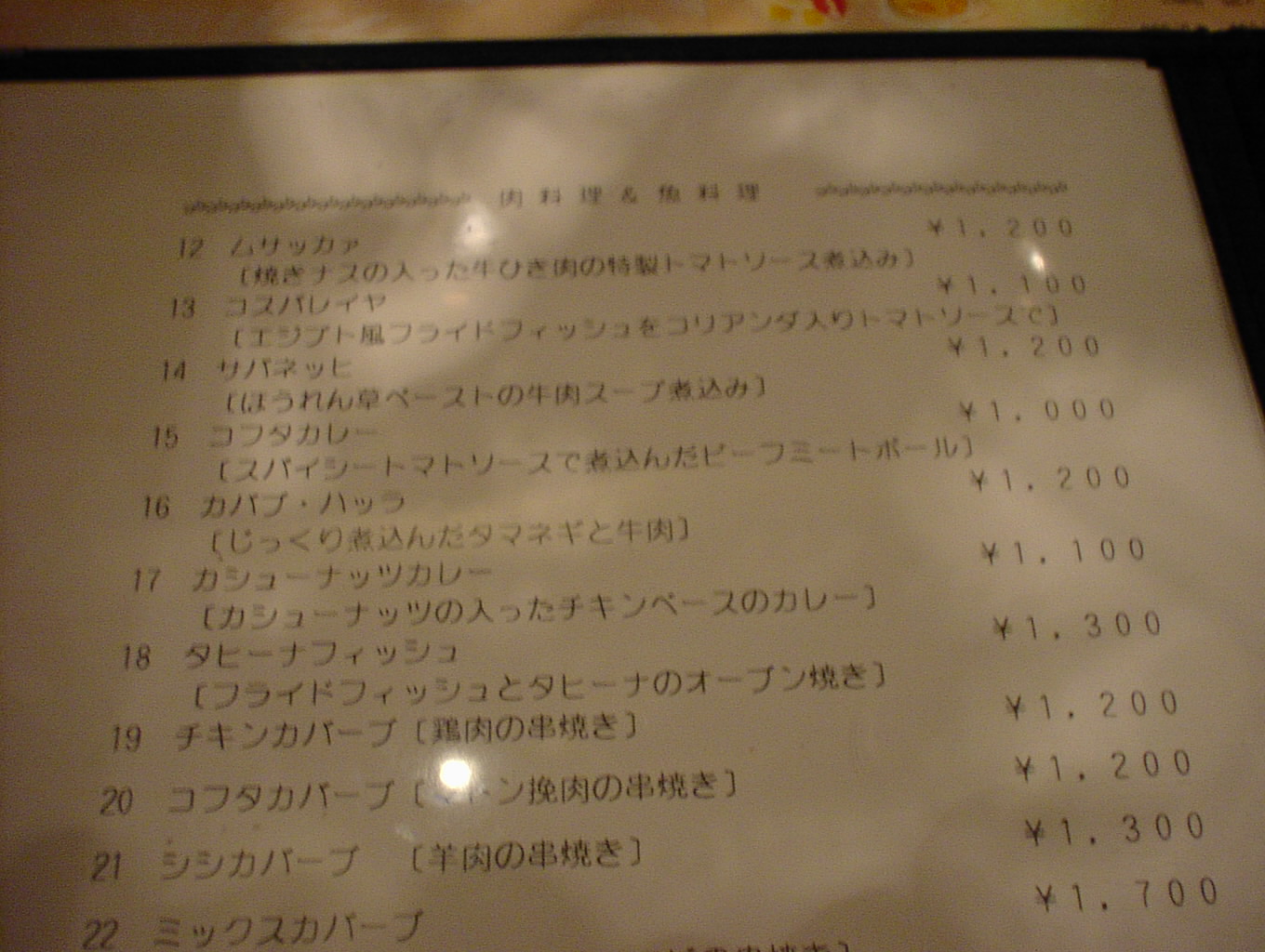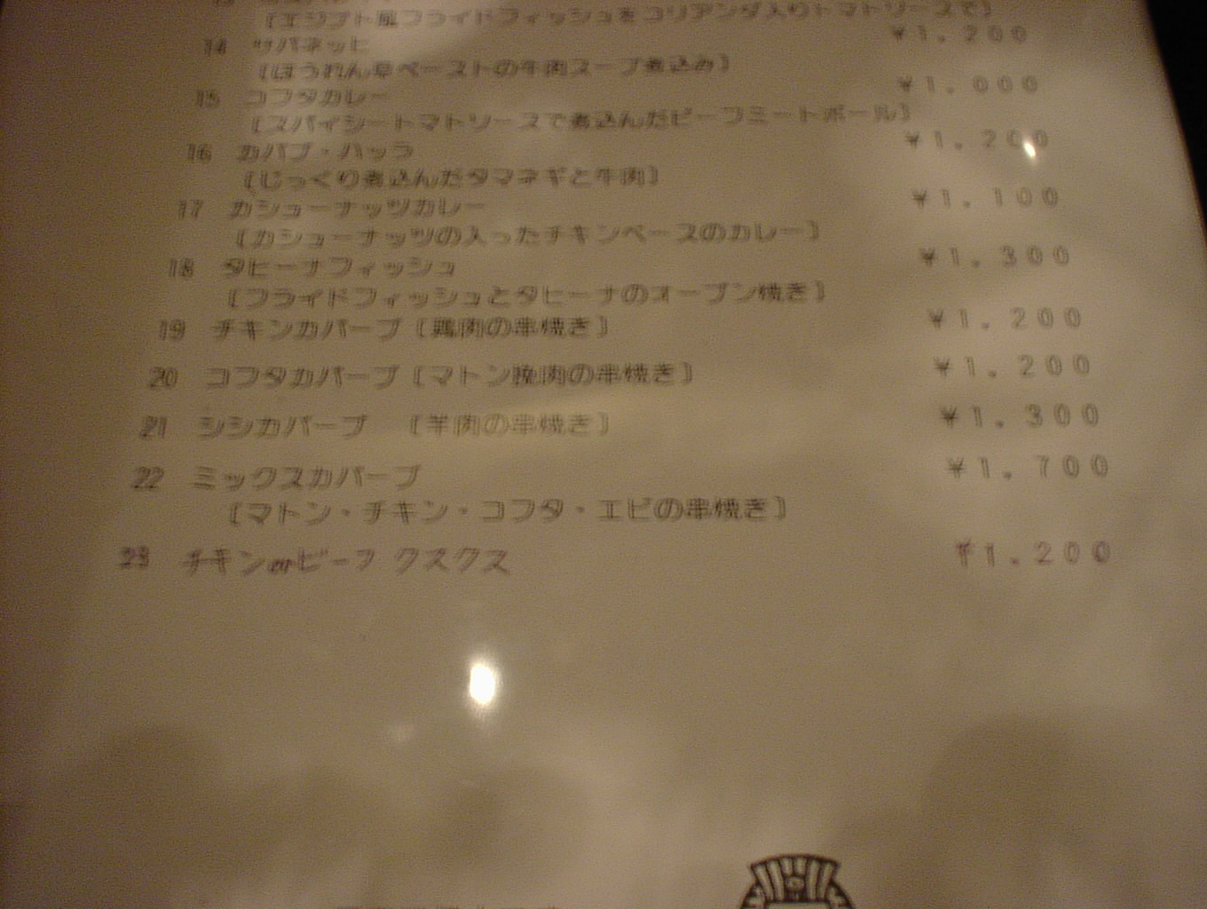 2003/2/15: エル・サラーヤ(EL・SARAYA)のメニュー