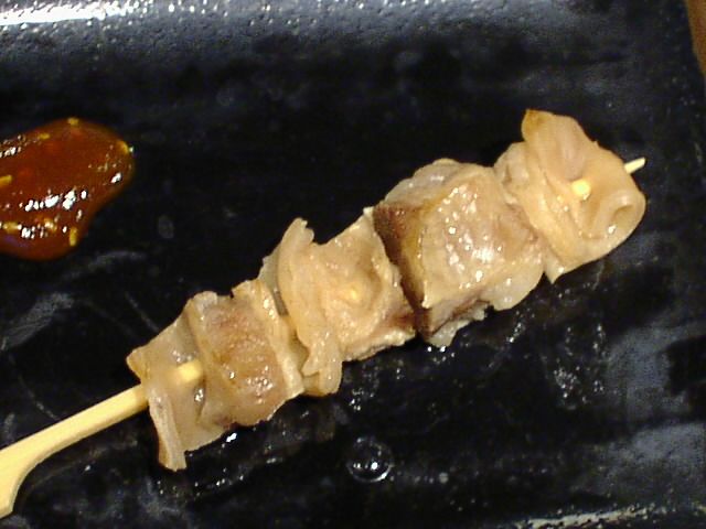 - 麺は温かい方を頼みました。つけ汁にはニンニクの効いたピリ辛の鶏つくねが4個と油揚げ、長葱が入っていてボリュームたっぷり。しかしそれ以上に麺の量がすごい!普通盛でも女性にはかなり多い感じ。しかもいかにも手打ちなしっかりと腰のあるうどんです。そば湯ならぬうどん湯もちゃんと出てきて、汁もちゃんと最後まで楽しめます。とっても美味しく頂きました。(ひ)