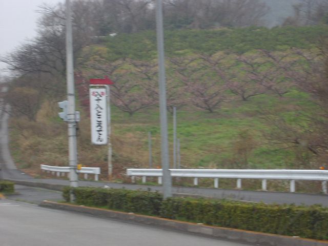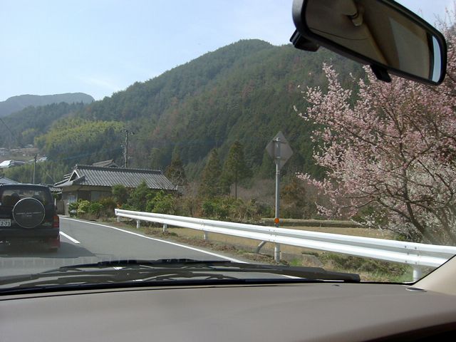 谷川米穀店に向かう438号。途中にちらほら早咲きの桜が咲いています。