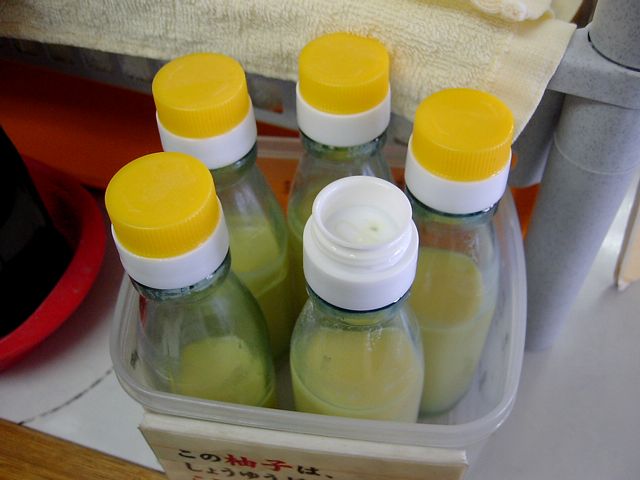 液体柚子のボトル。ここも出過ぎないように小さな穴が開けてありました。