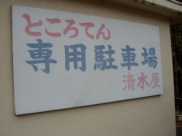 駐車場に「ところてんが止めてある」わけではないようですが。(^^;(JK)