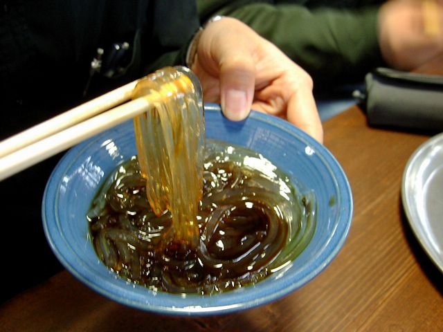 今回の私のベスト1。うどんはなめらかでモチモチ。ツユは甘めなコク。そしてかしわ天!既にかなりな満腹状態で挑んだのが非常に残念でした。隣の人が食べていたゲソ天も美味しそうだったなあ。(ひ)