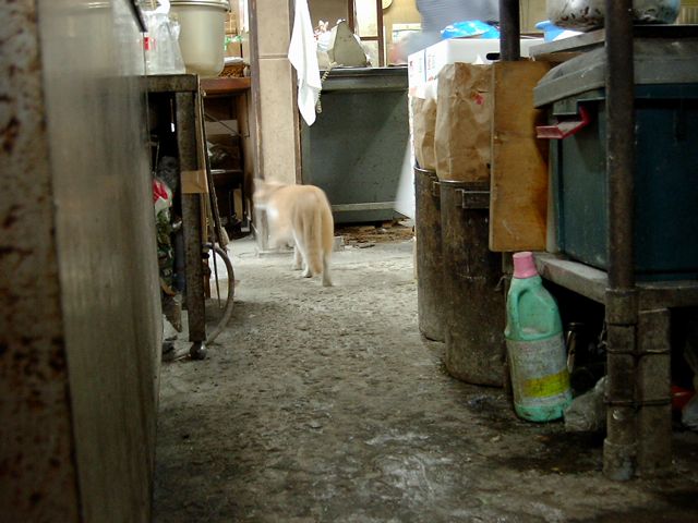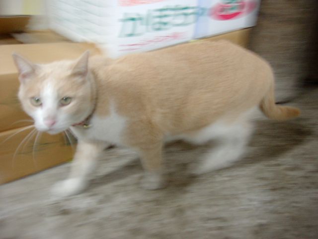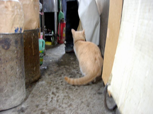 お店にいた可愛い猫。もう一匹 八割れの猫もいました。ネズミ退治に活躍してるんでしょうか。