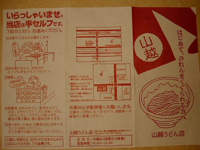 [01]赤坂製麺所・[02]山越・[03]田村・[04]谷川米穀店・[05]名もないうどん屋・[06]あたりや・[07]はりや・[**]ほっこり温泉・[**]清水屋・[08]坂出山下うどん・[09]讃岐家・[**]SEATTLE'S BEST COFFEE