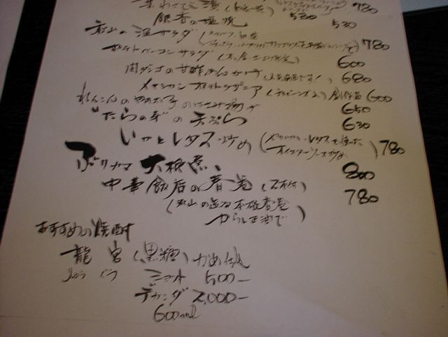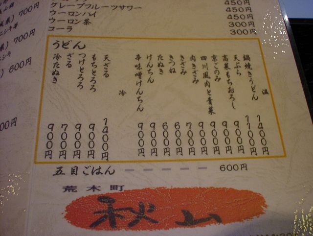 2003/04/12: 秋山のメニュー
