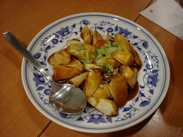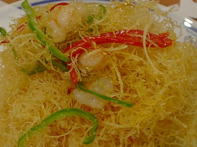 - この素材、なんだと思います? ジャガイモ(土豆)なんですよ!!! もうビックリです〜〜〜〜〜!!!!! なんちゅー素晴らしい包丁さばき。でも、技術がスゴイだけじゃなくて味も美味しいんです。脂っこくないし、食べた時の口触りや口溶けも素晴らしい。とにかくスゴすぎ。もちろん仕込みは大変なんだそうです。今回特別に作ってくださいました。(JK)