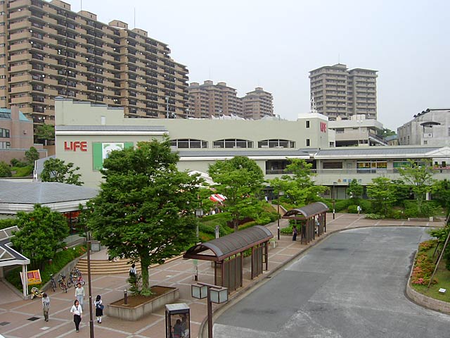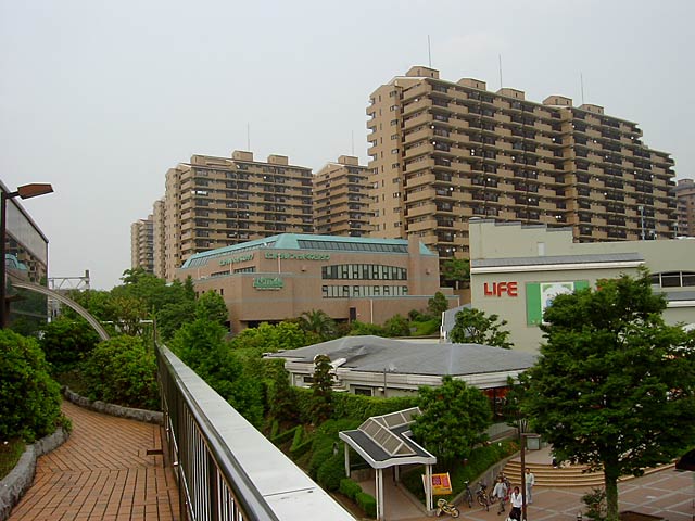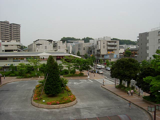 緑園都市駅ホームからの駅前の眺め。