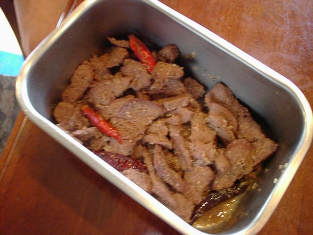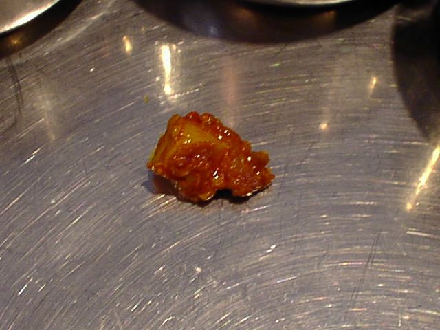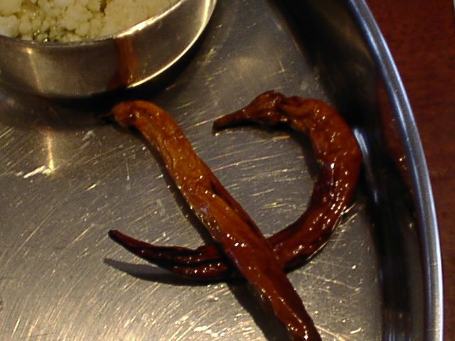 - 日本の唐辛子を揚げたものだそうです。すごく辛いのかと思ったら普通にかじって食べられる爽やかな辛みで、ご飯に砕いてがけたりするそうですが、美味しいのでそのままかじって食べちゃいました。(JK)