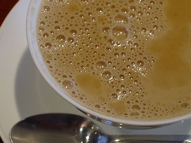 - スパイスの効いたカフェオレは初めてですが、美味しいです。風味豊かな黒砂糖が良く合います。スパイスはカルダモン、クローブ、シナモンで、コーヒーはインド産の「マイソール」だそうです。マイソールはメキシコに次ぐ程の生産量がありながら癖がないのでブレンドに回ることが多いのだそうです。(JK)