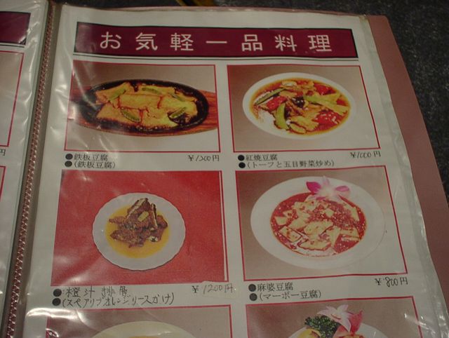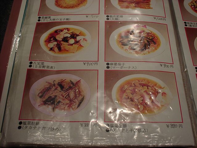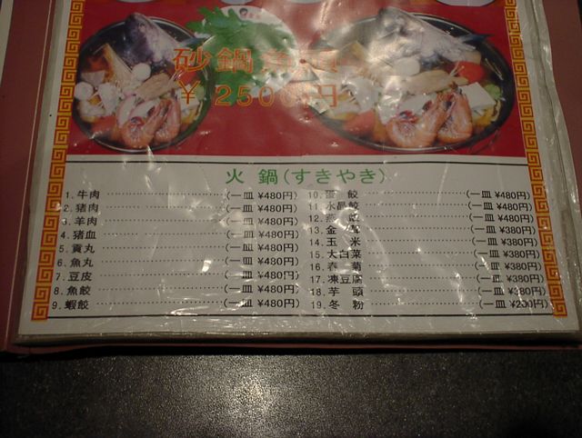 2003/05/31: 金栄のメニュー