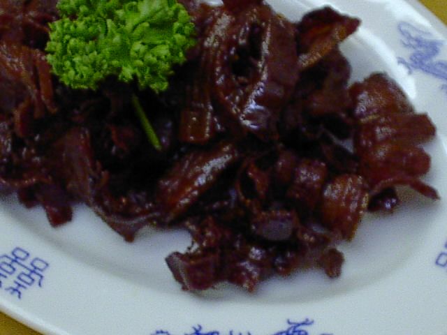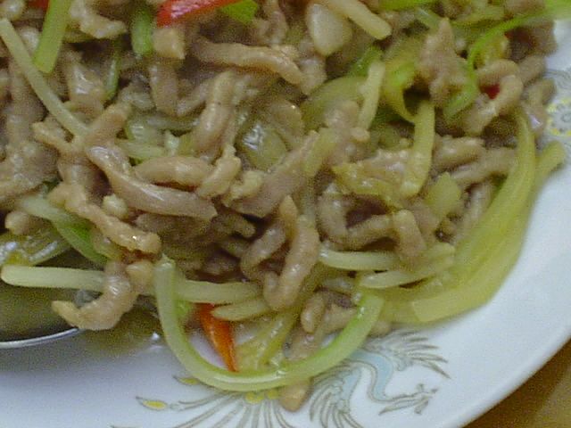 - 「[豆支]油」が調味料で「皇烟」がベーコンだそうです。カリカリっとスナックのような楽しい美味しさ。(JK)