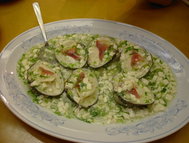 - これってミル貝? 豆腐の使い方も洒落てるし、緑は香菜で満足の一品です。(JK)