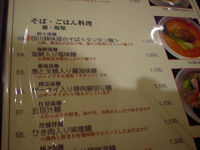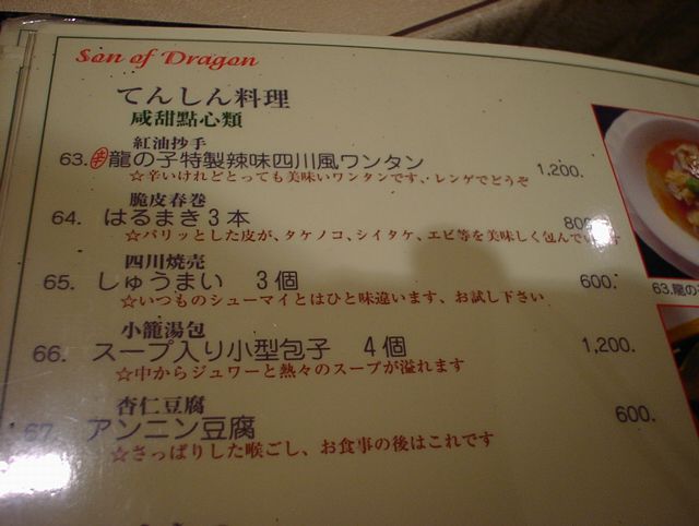 2003/07/19: 龍の子のメニュー