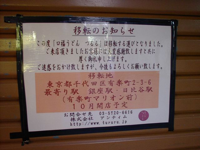 この後、うどん屋を梯子しようと「つるる」にいったら、閉店してました(お盆かららしい)。10月開店予定で有楽町に移転するそうです。価格やメニューが御茶ノ水にはマッチしなかったのかな。有楽町には値段を上げて成功した讃岐うどん屋もあるので、場所的にはそっちのほうが良いのかも。(JK)